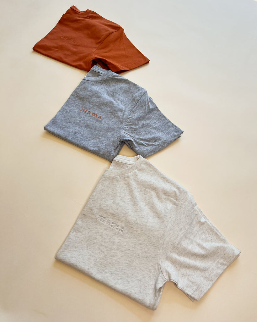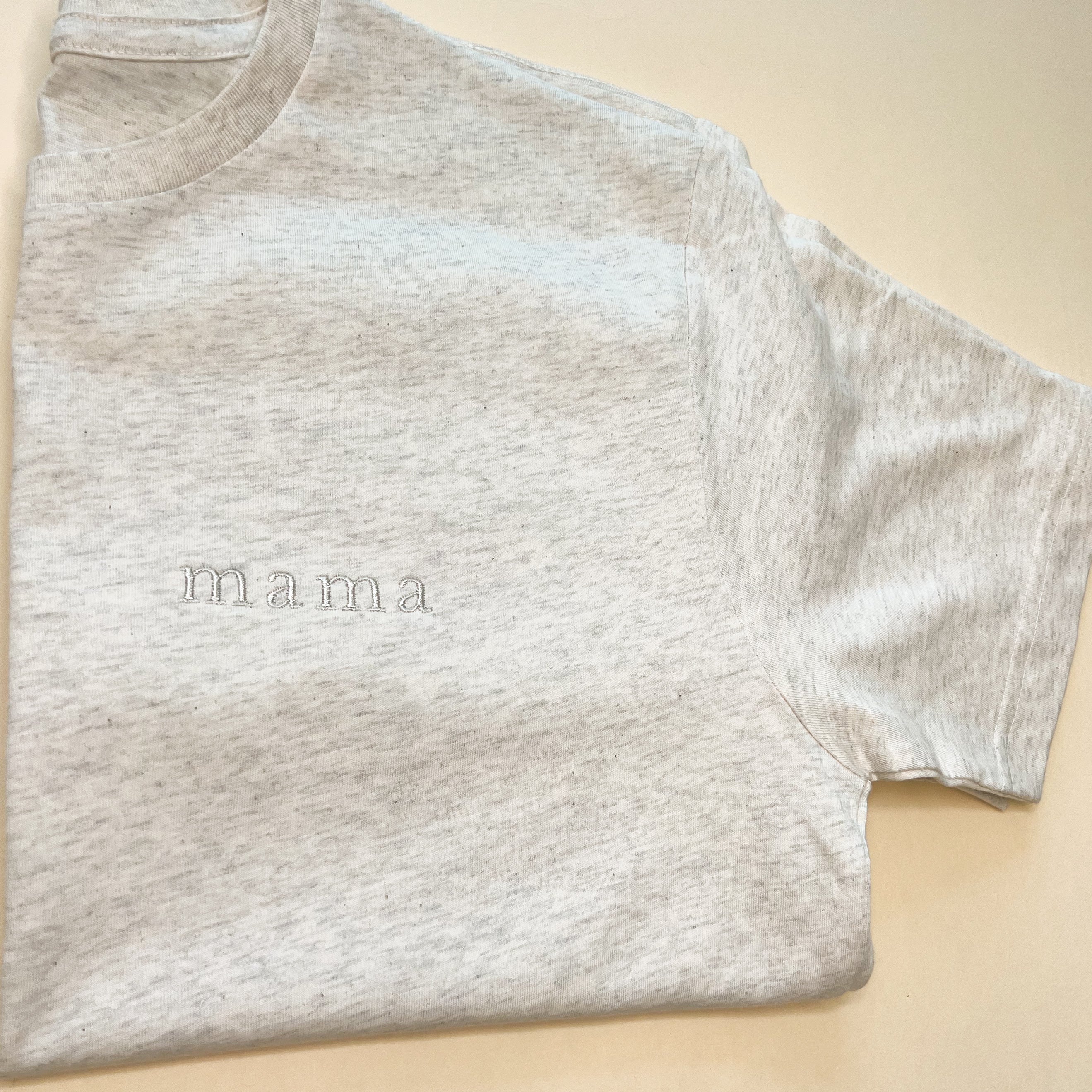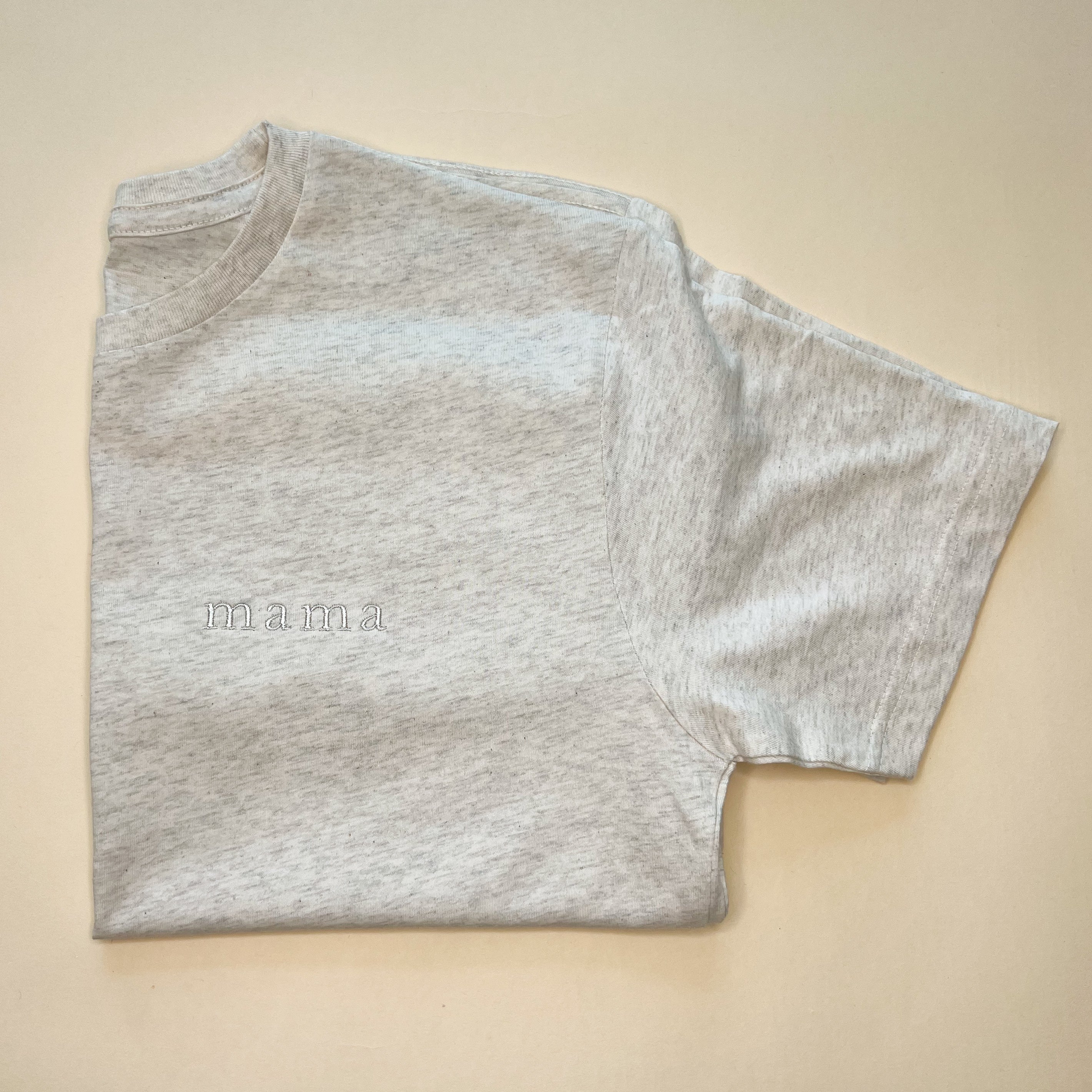 Mama Embroidered Classic Tee - Neutrals - Left Chest Design