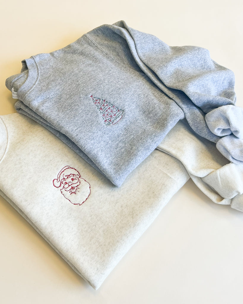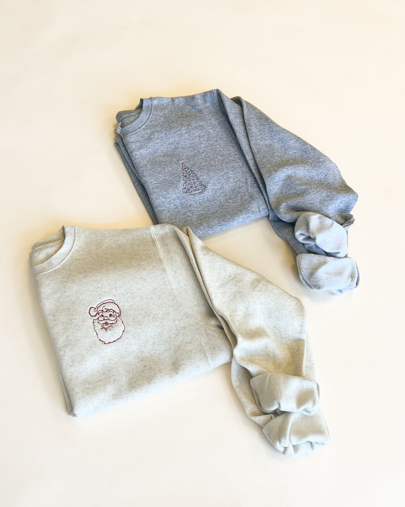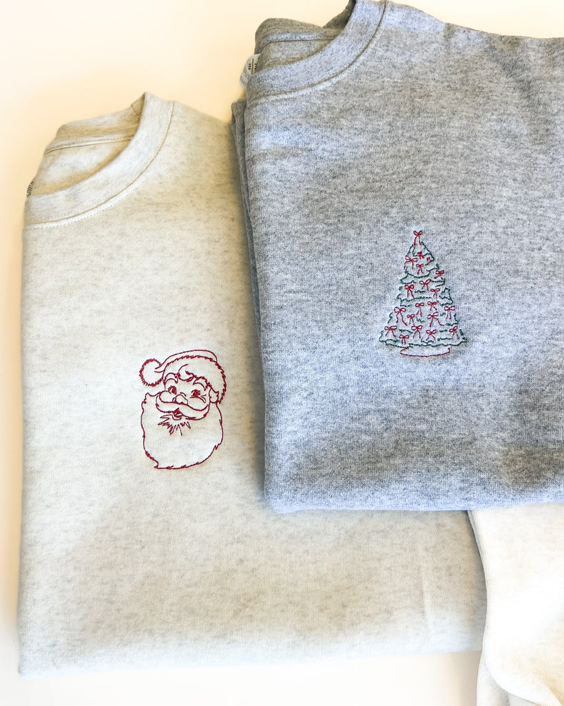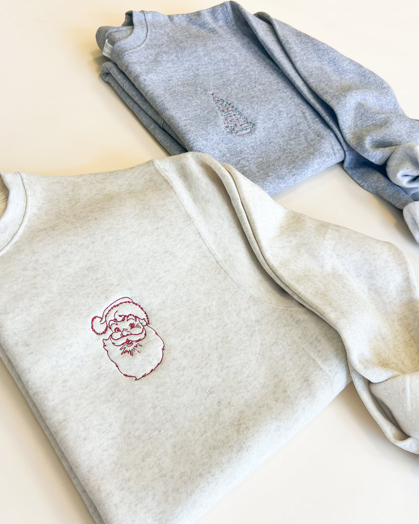 Vintage Santa Outline Embroidered Sweatshirt - Left Chest Design