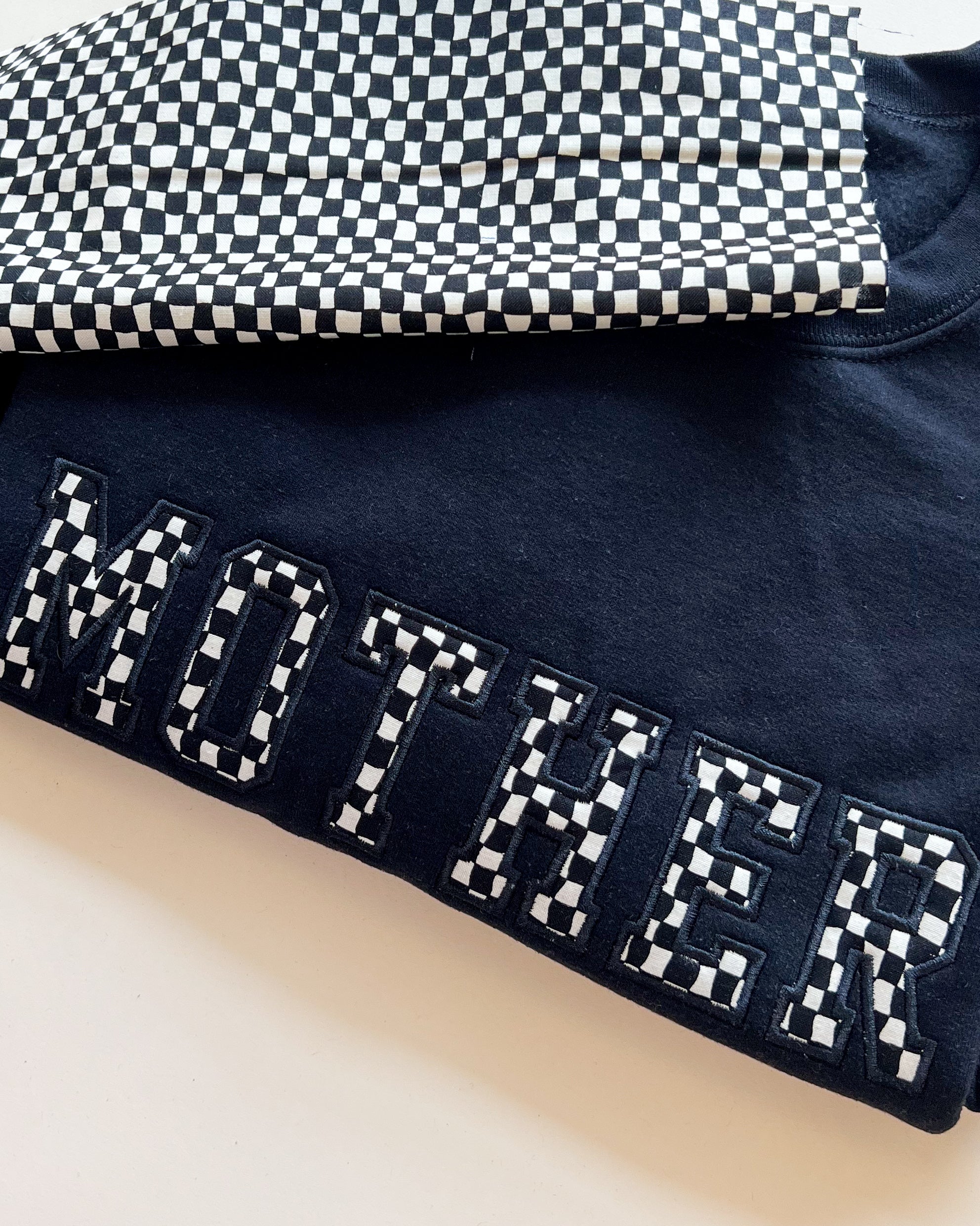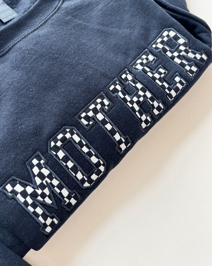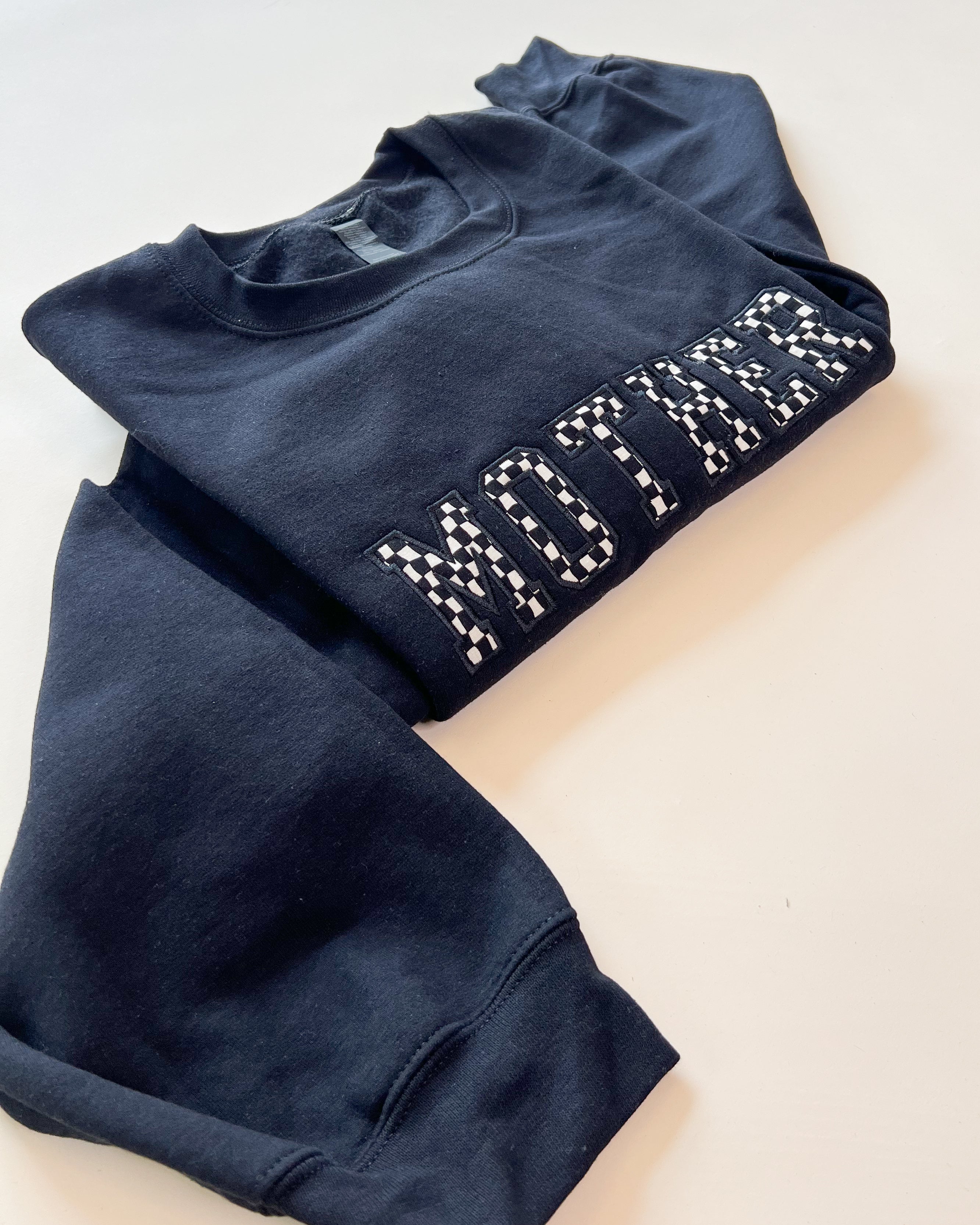 Custom Name Applique Embroidered Sweatshirt - Black Checker