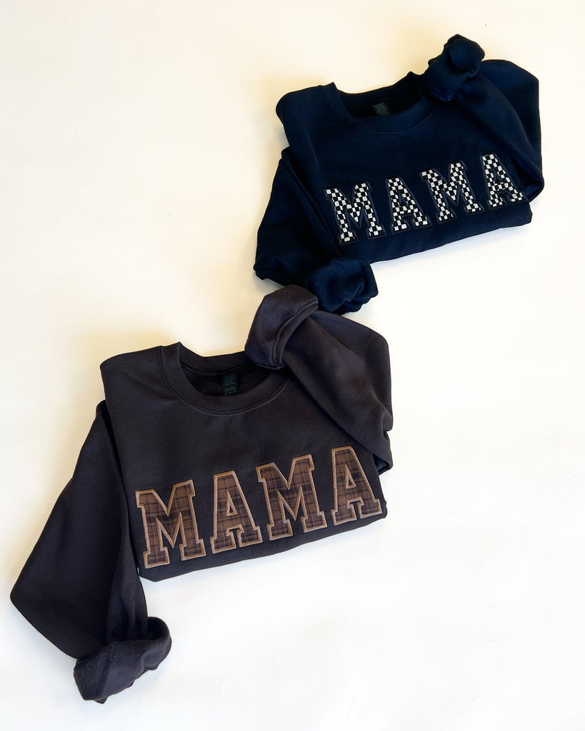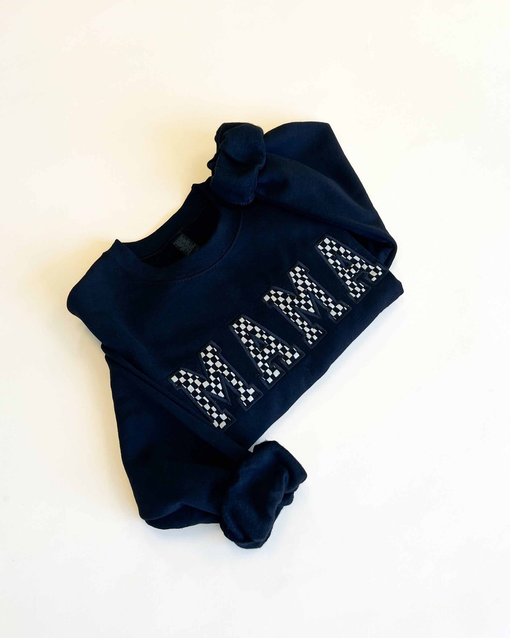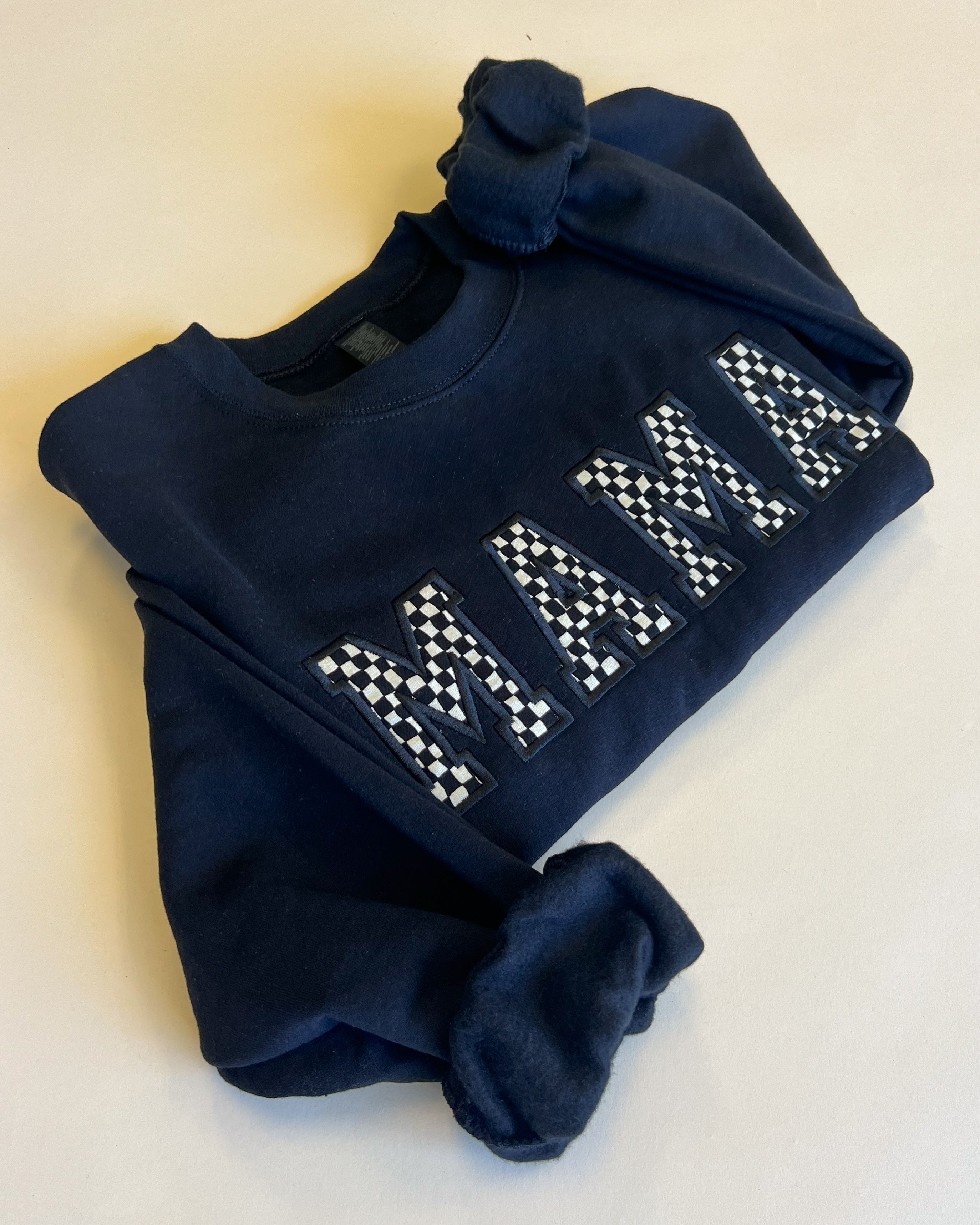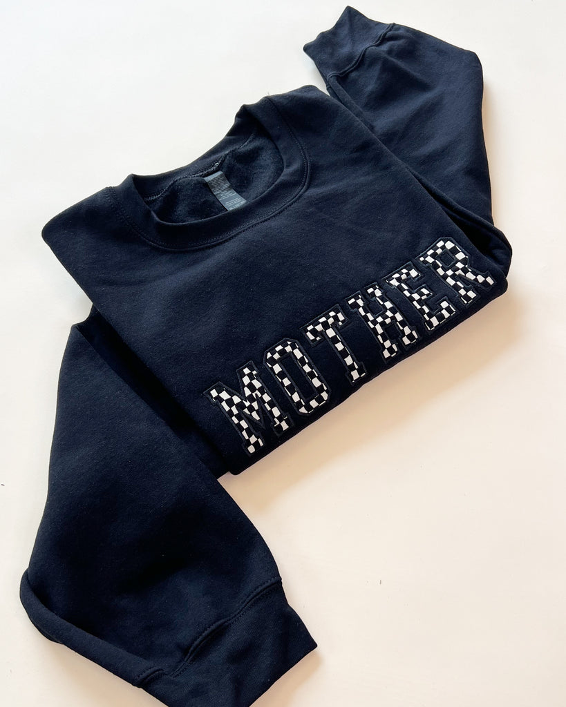 Custom Name Applique Embroidered Sweatshirt - Black Checker