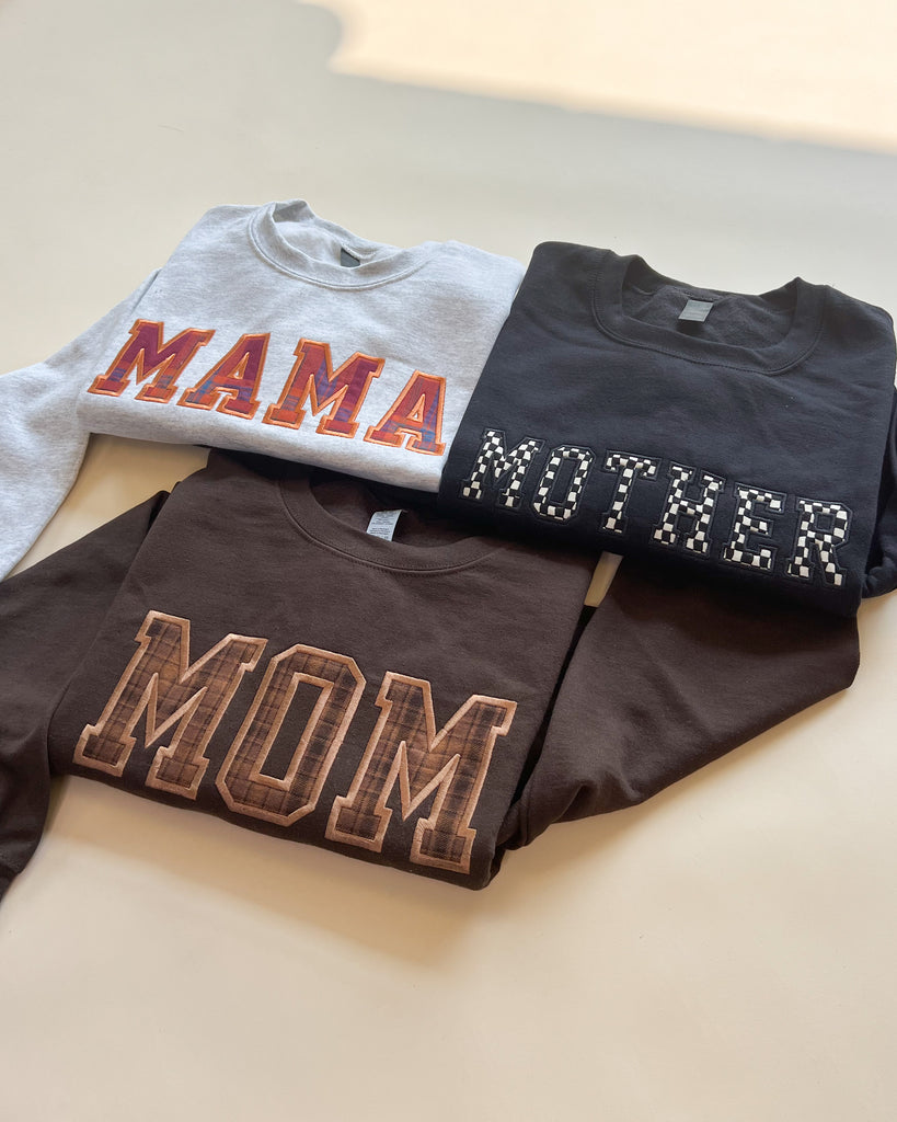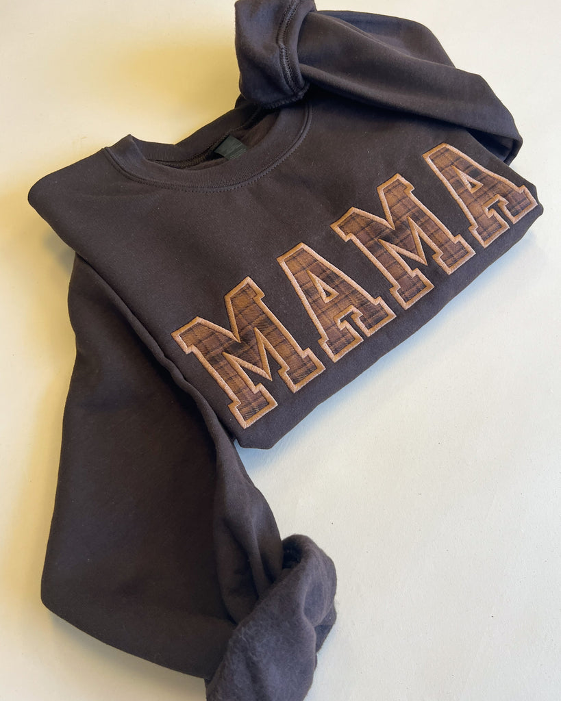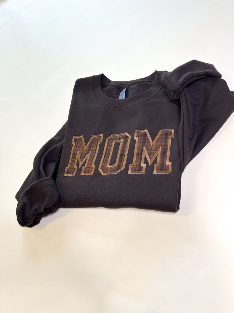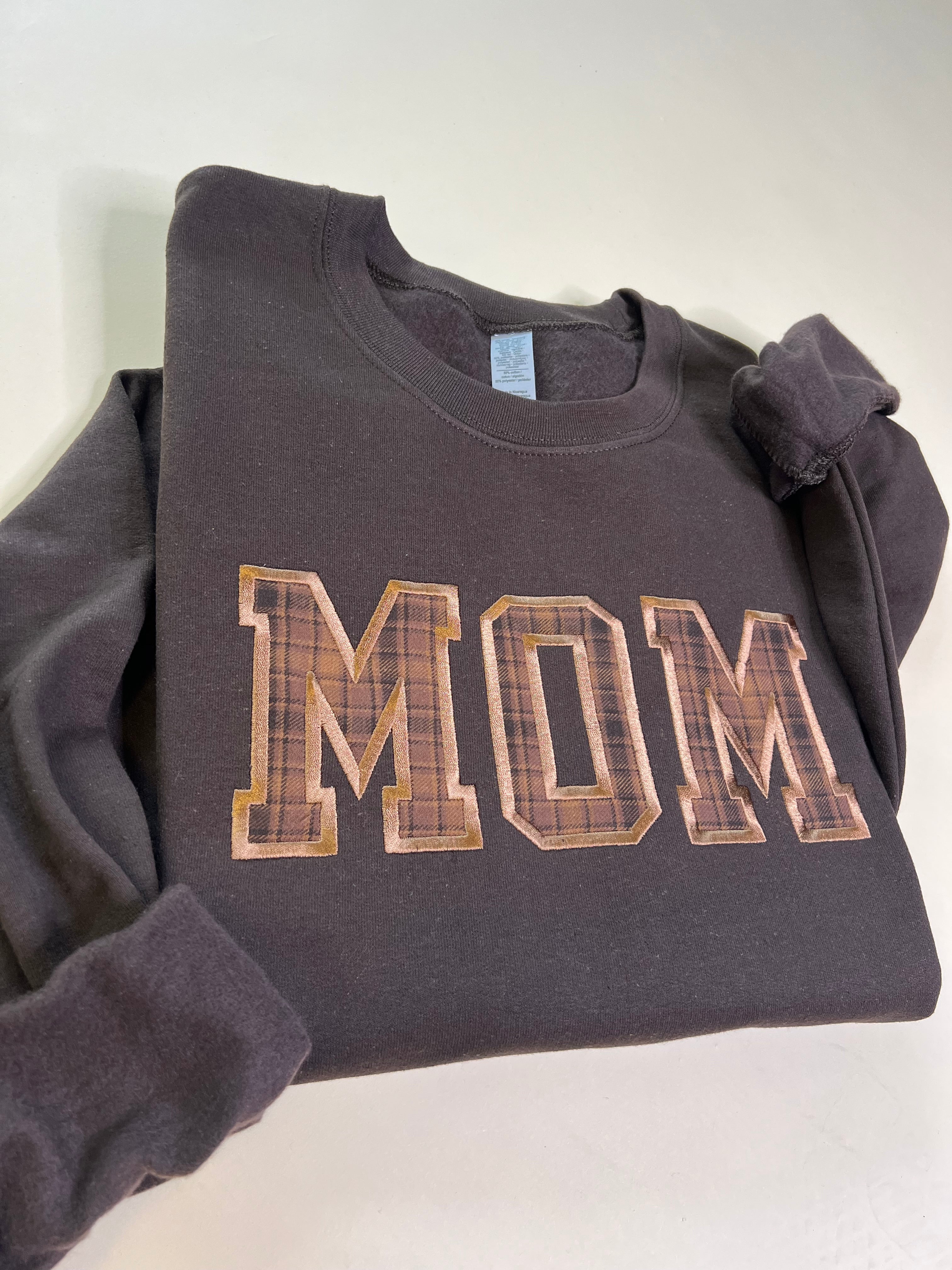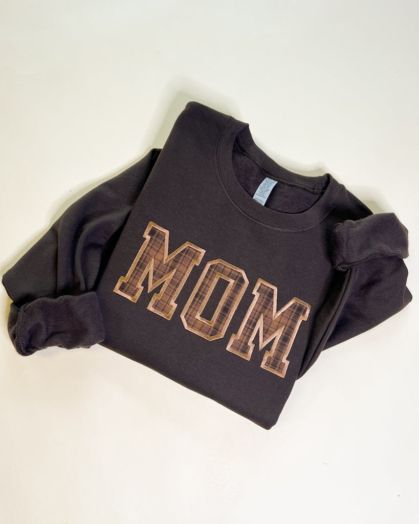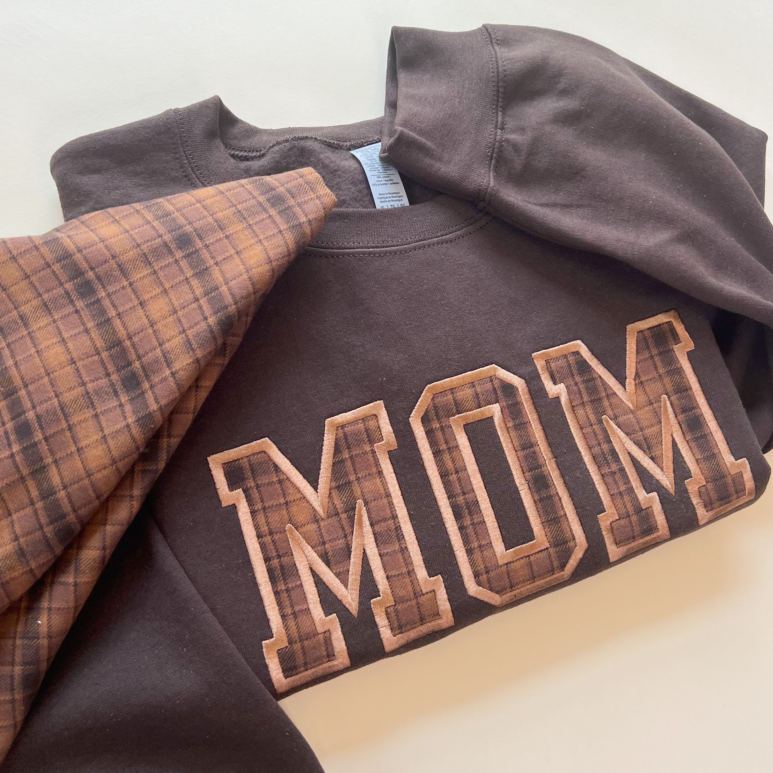Custom Name Applique Embroidered Sweatshirt - Brown Plaid