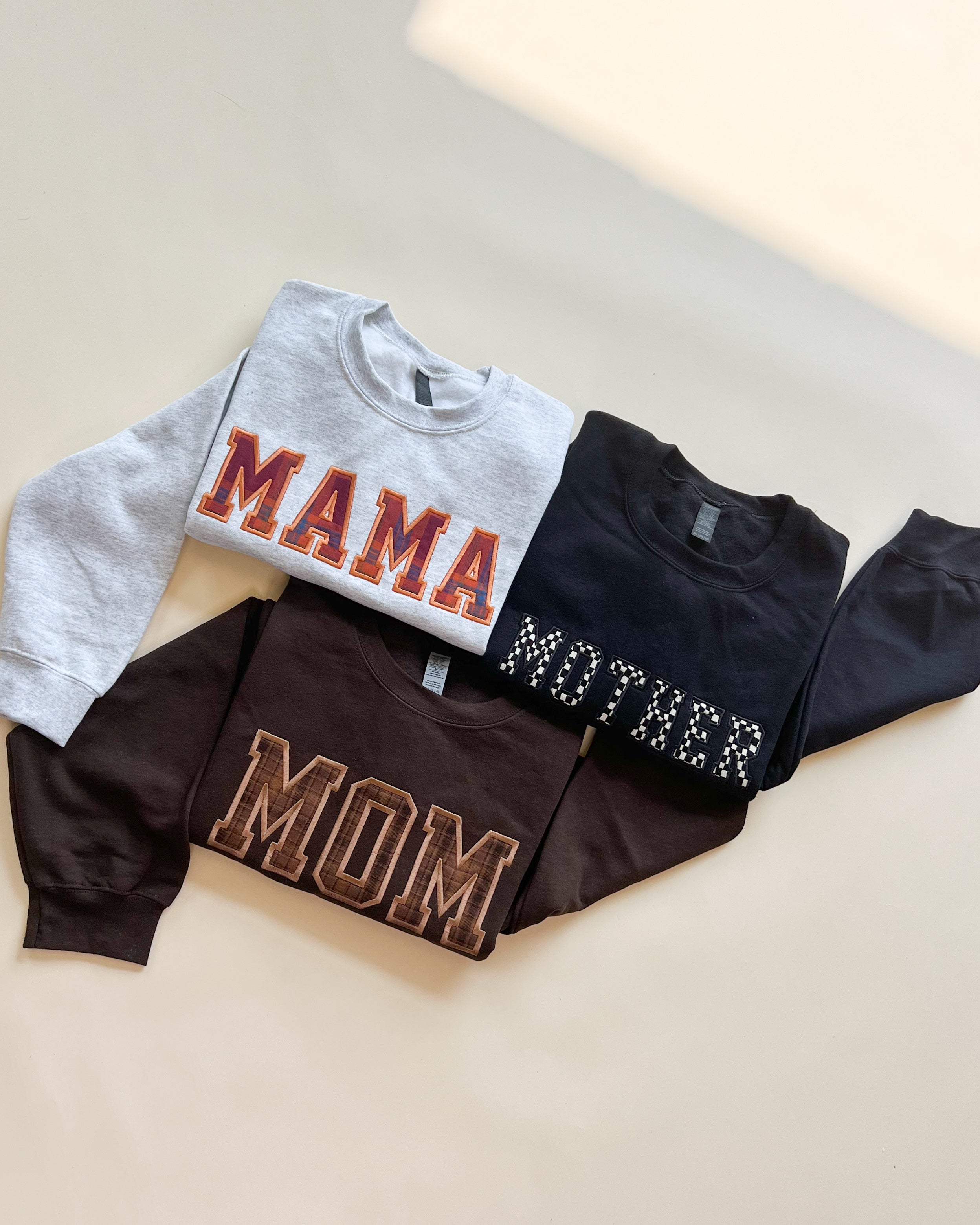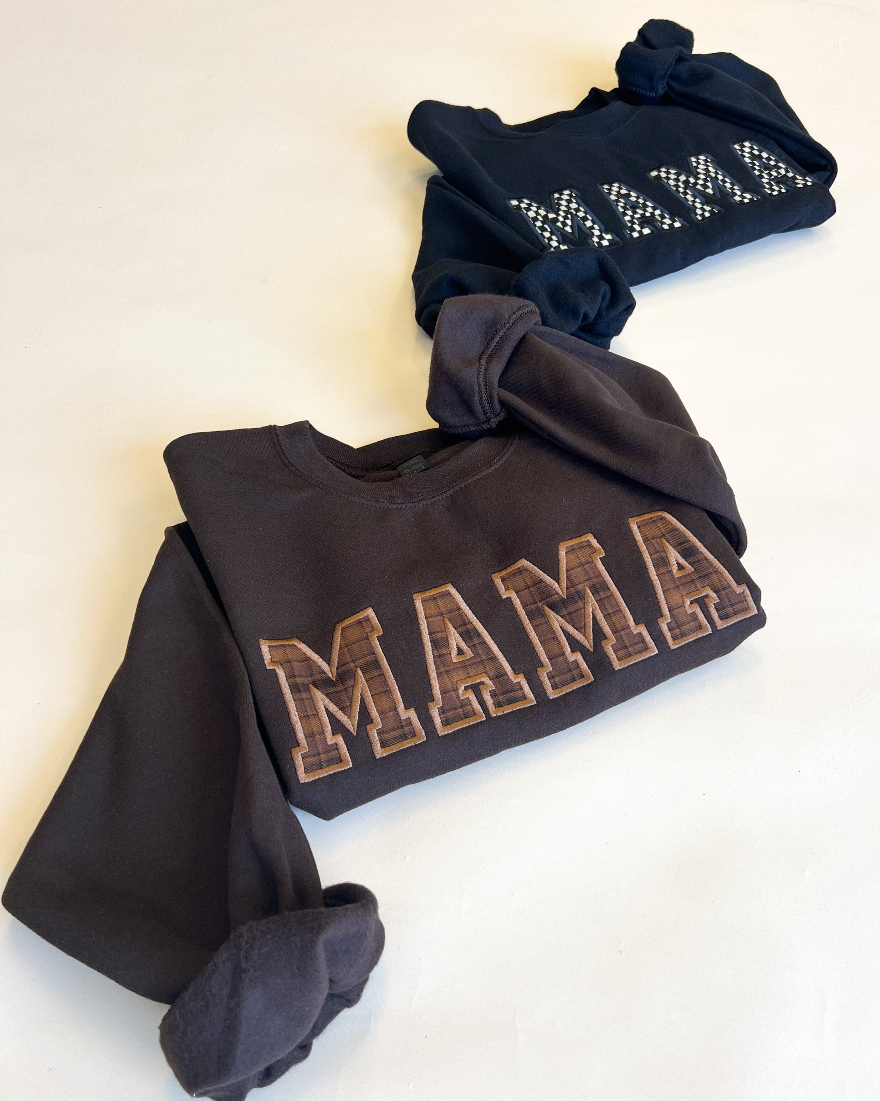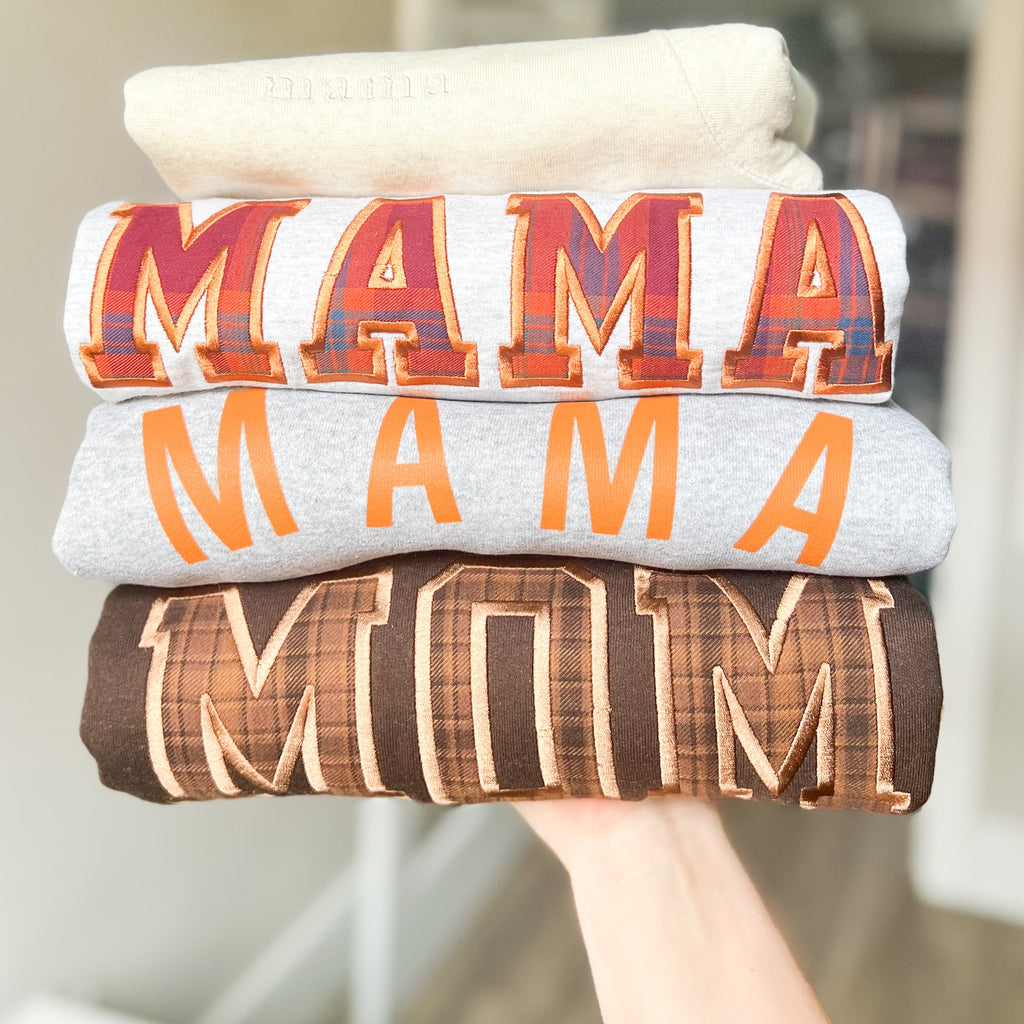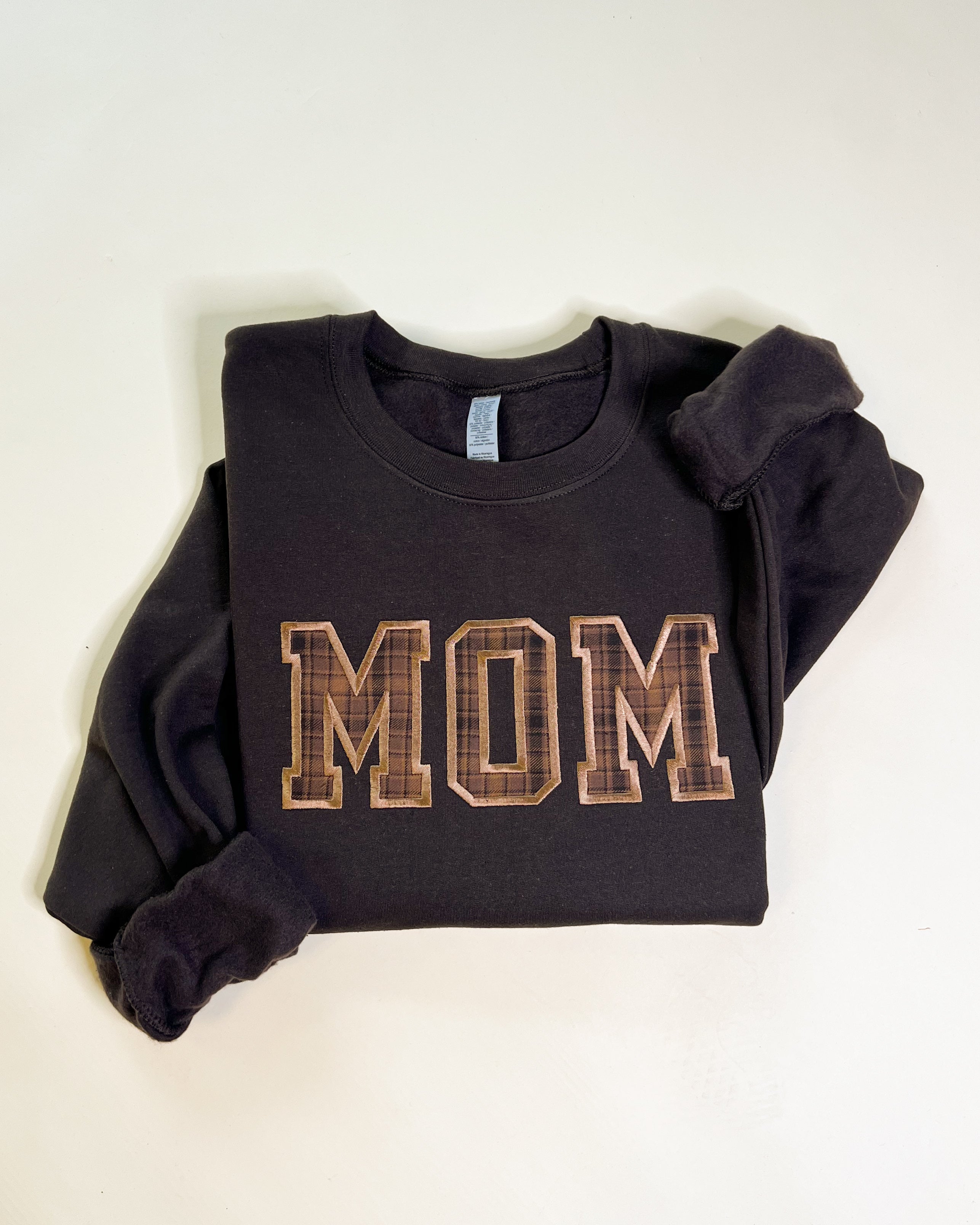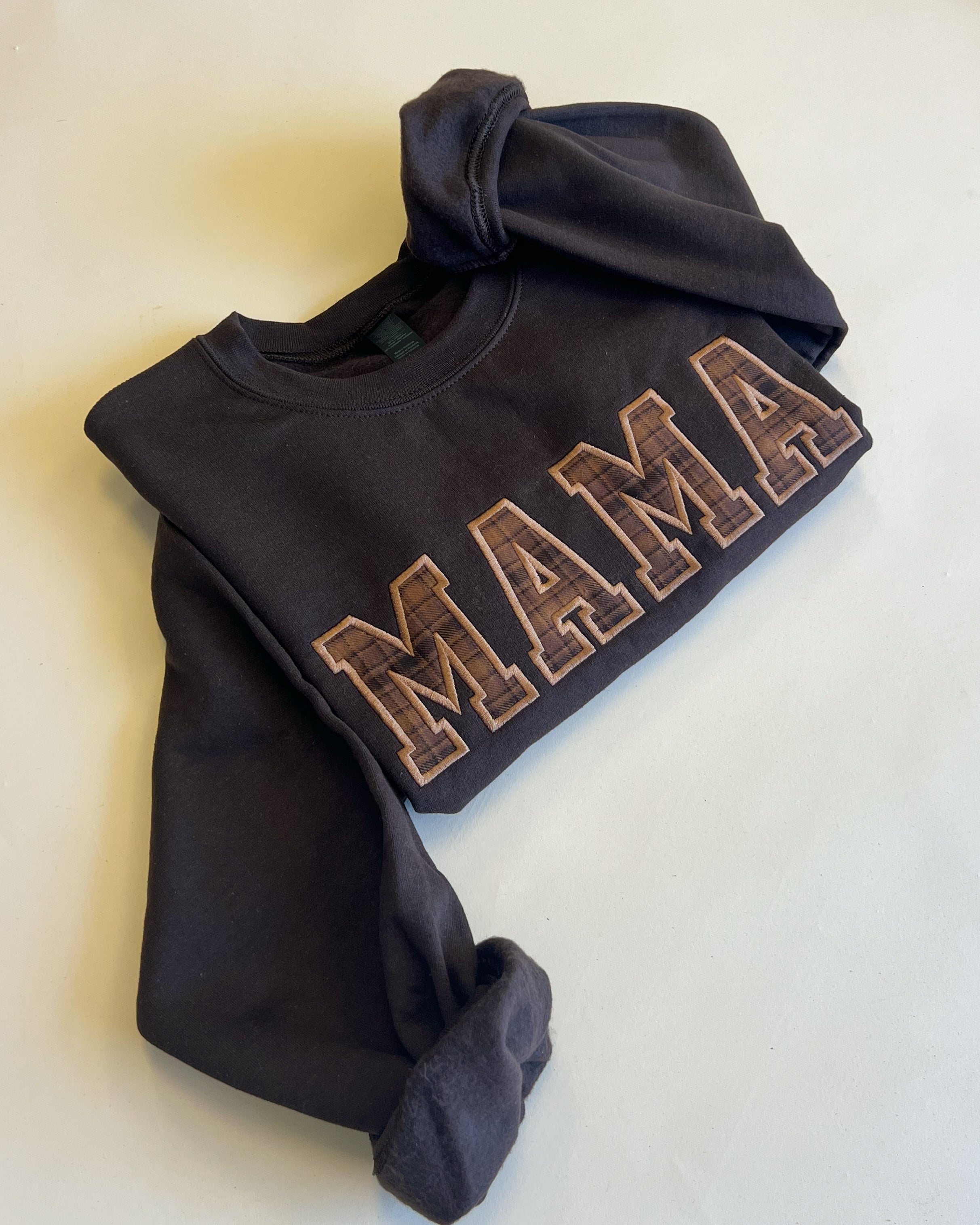 Custom Name Applique Embroidered Sweatshirt - Brown Plaid