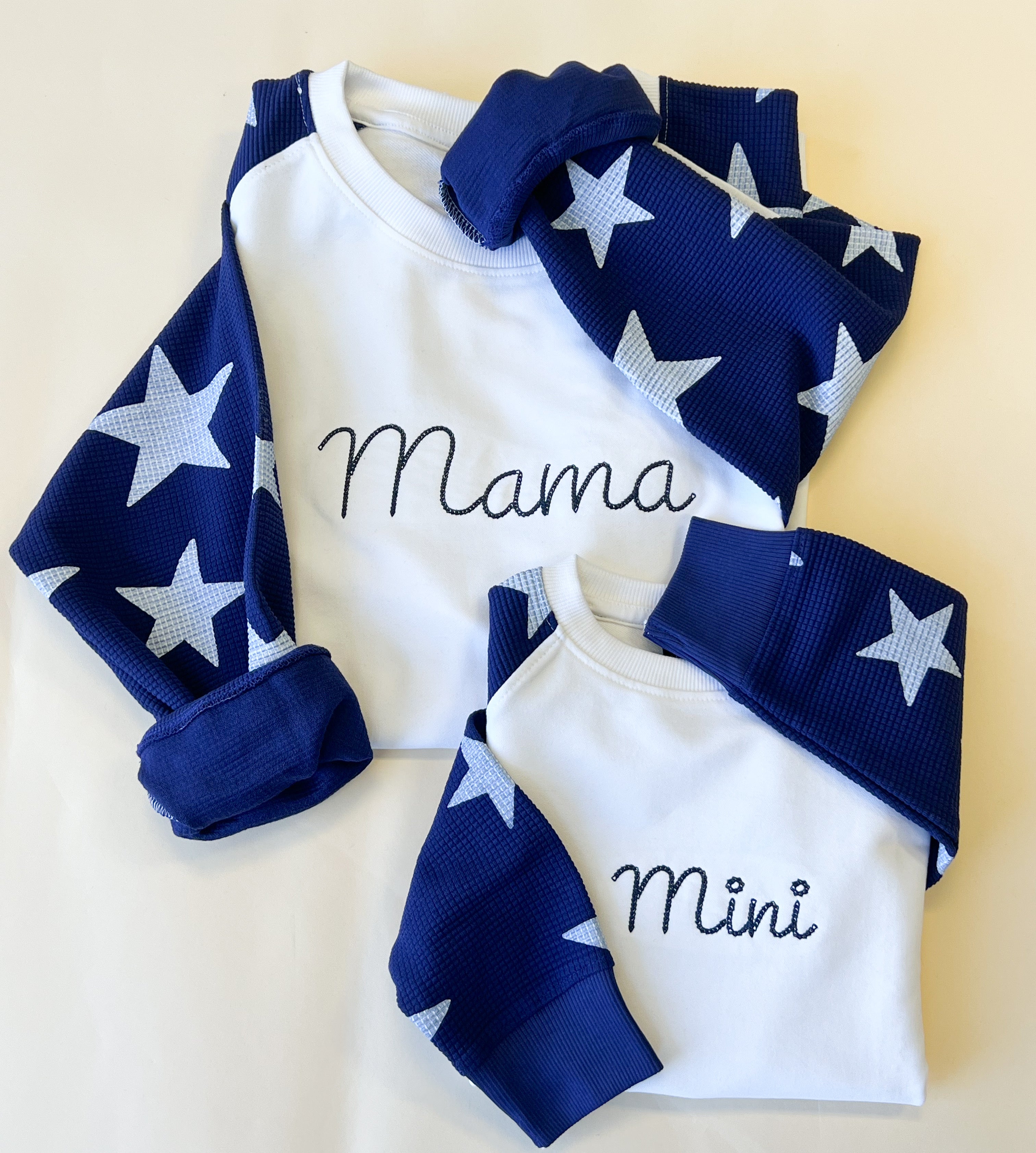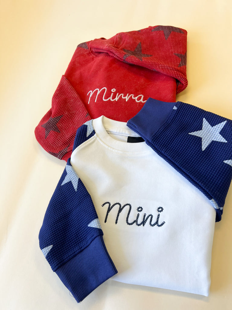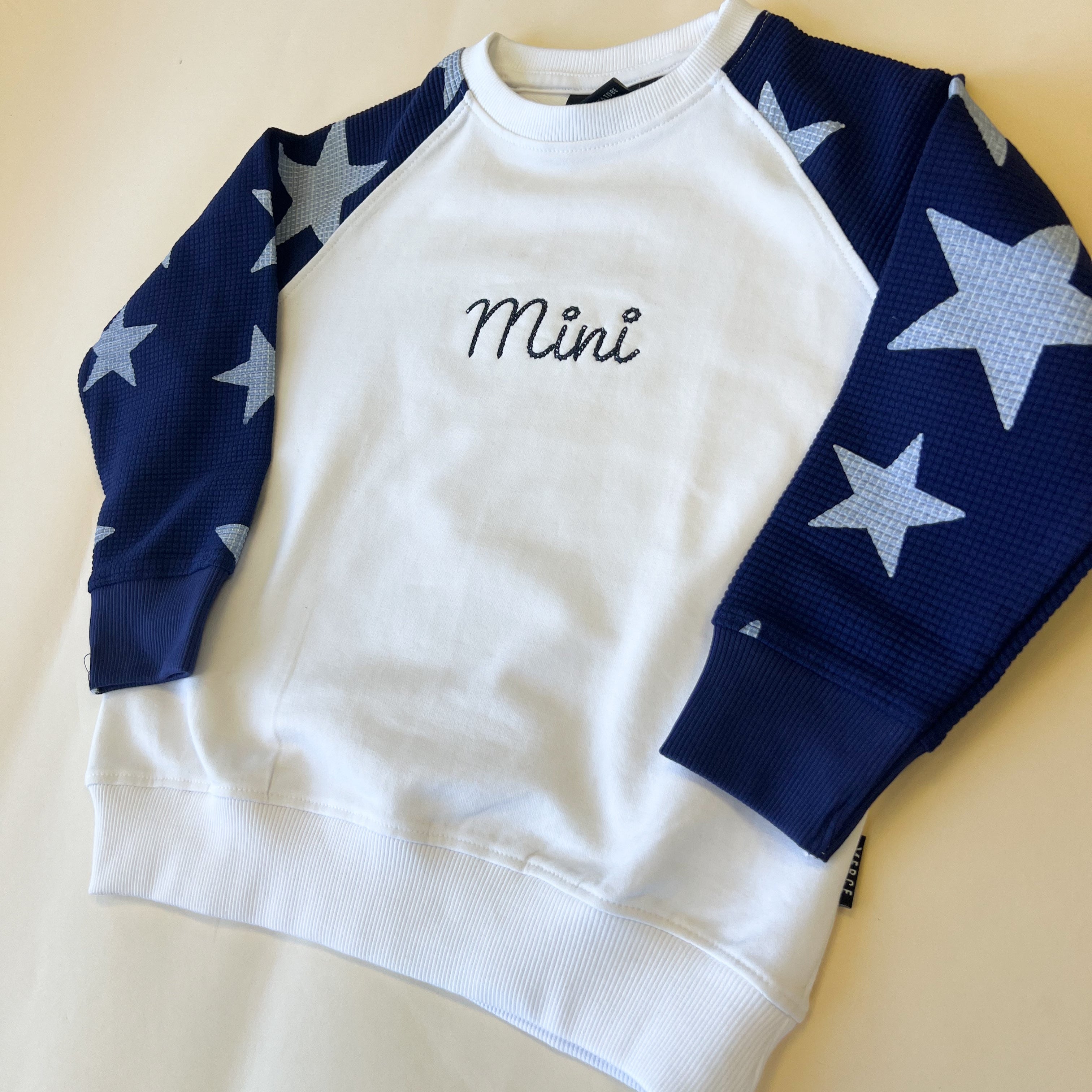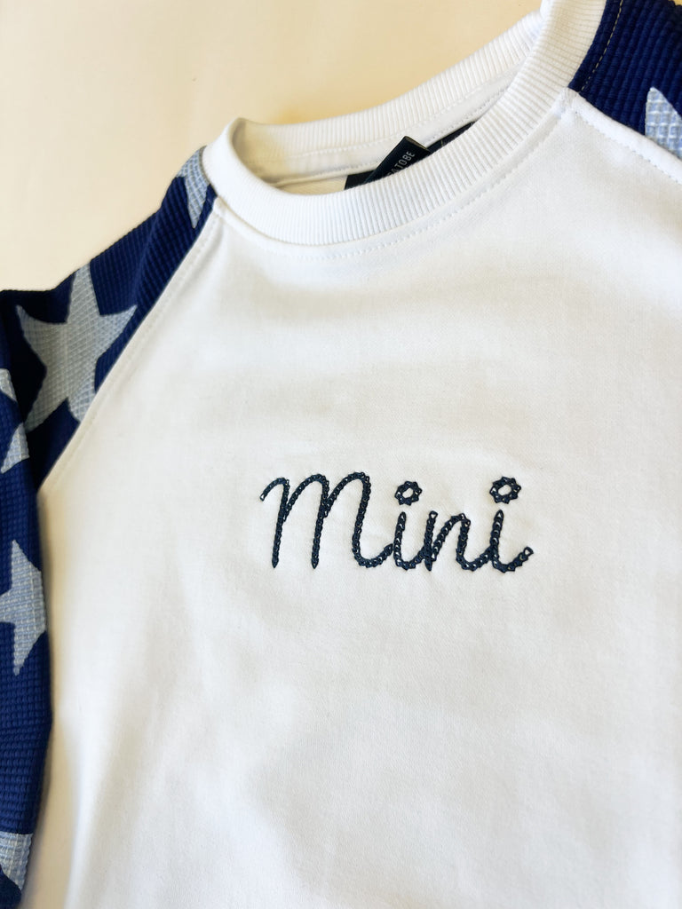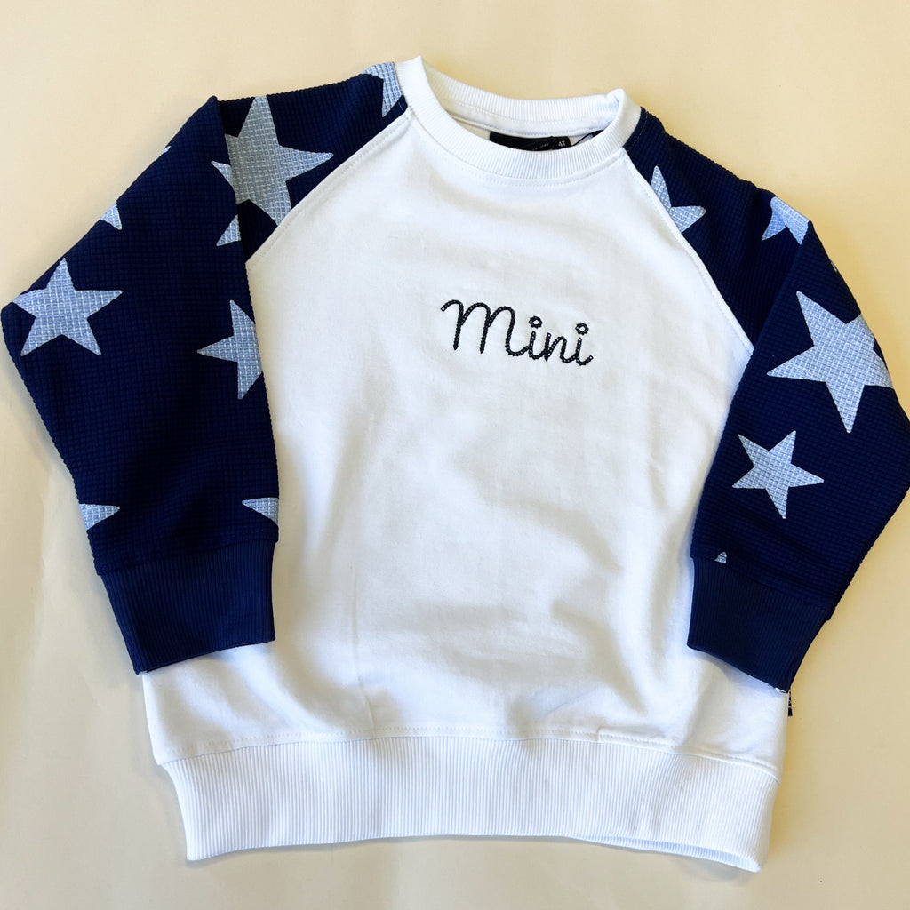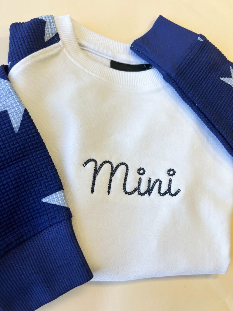Custom Name Child Waffle Sleeve Crewneck - Navy / White