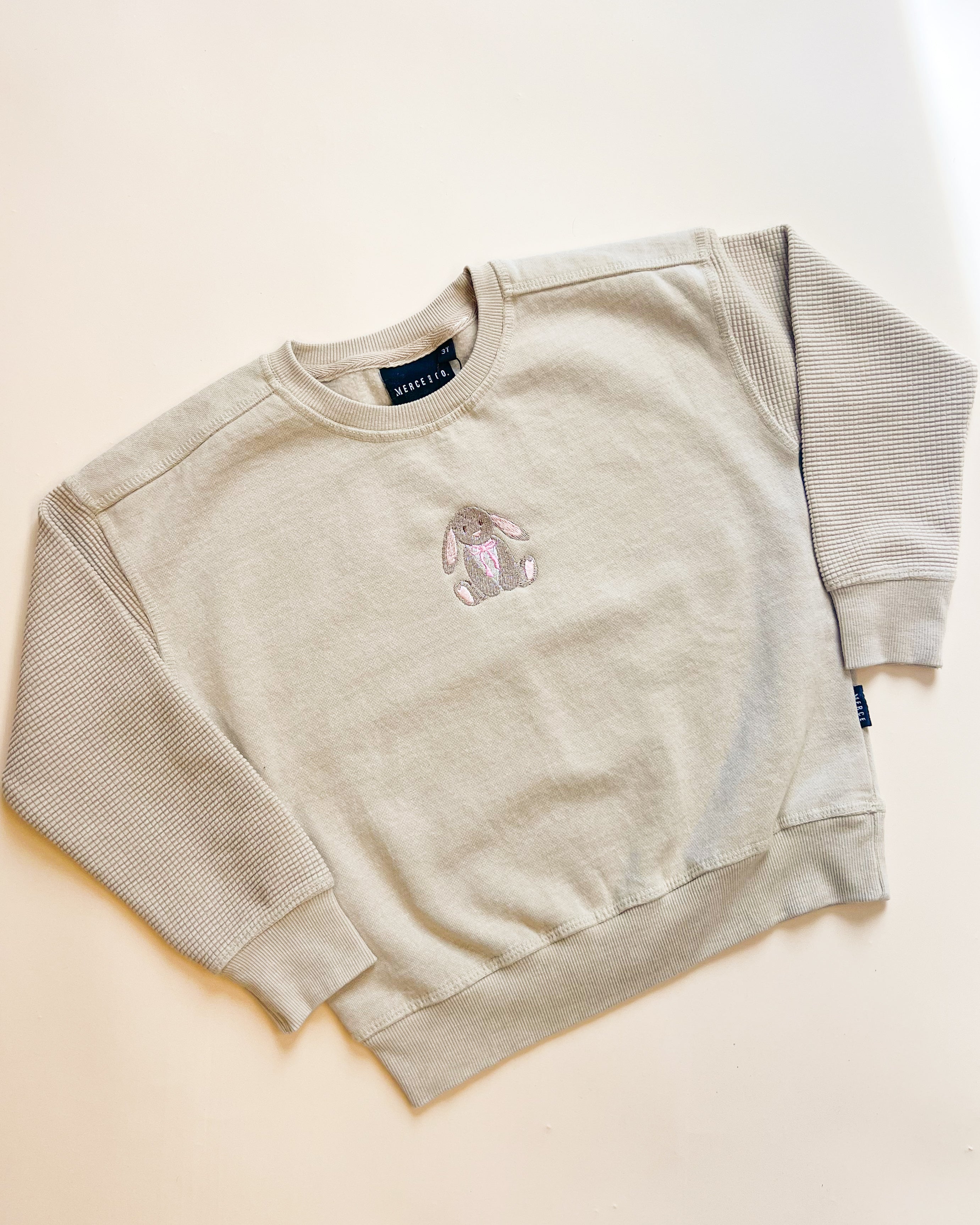 Bunny Embroidered Child Crewneck - Oat
