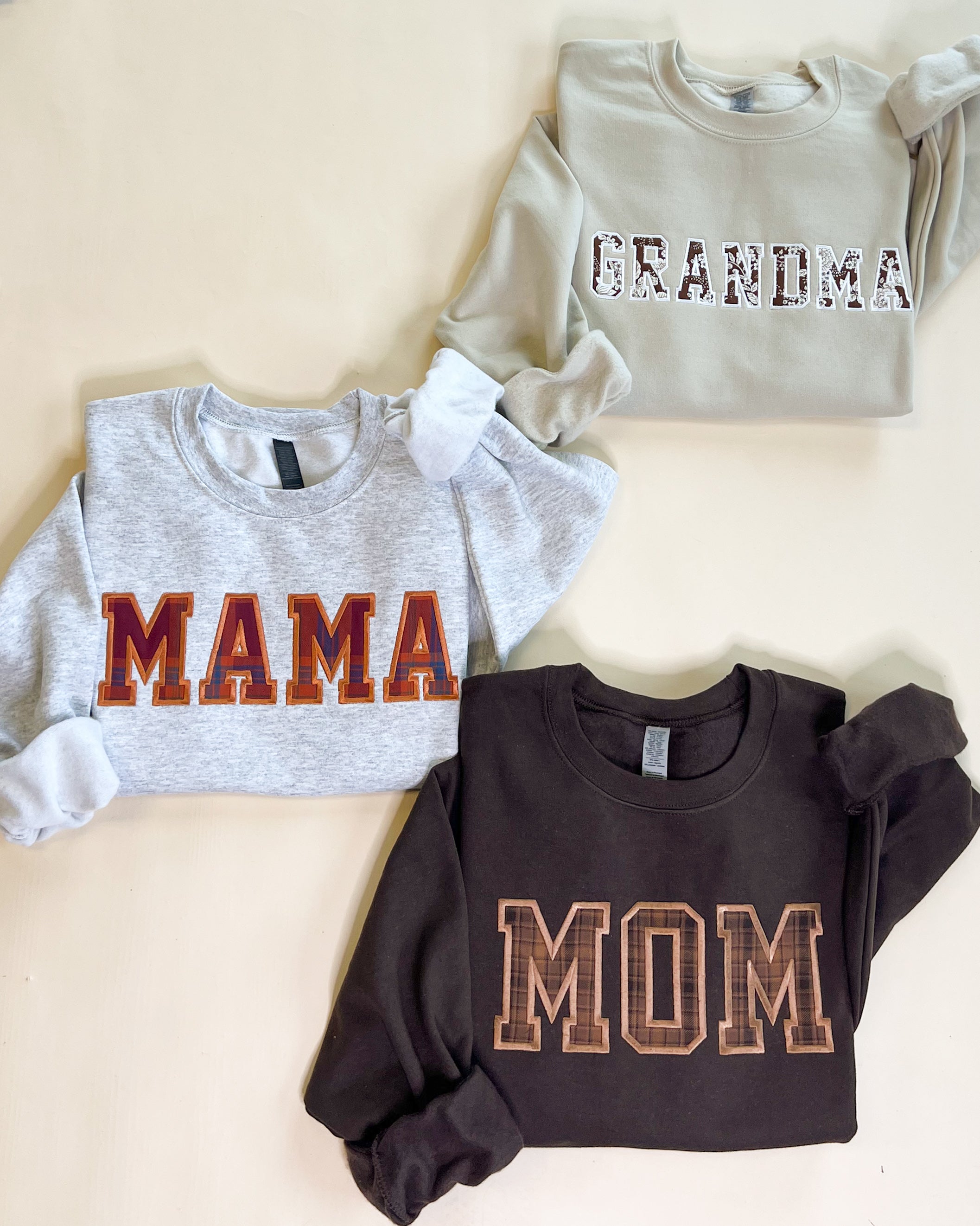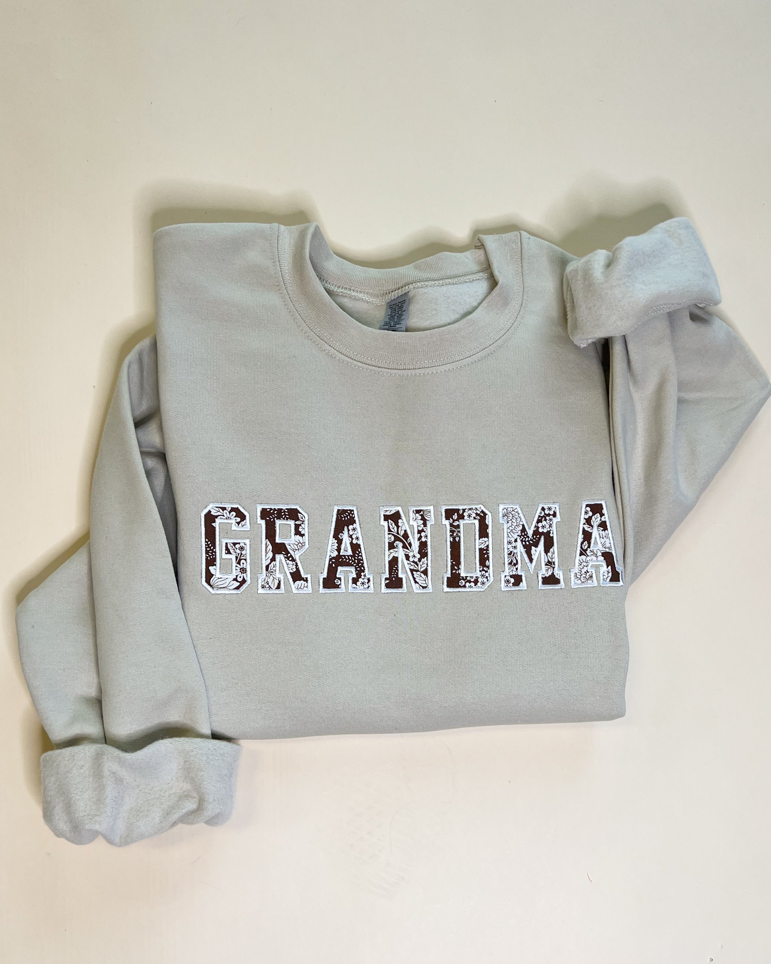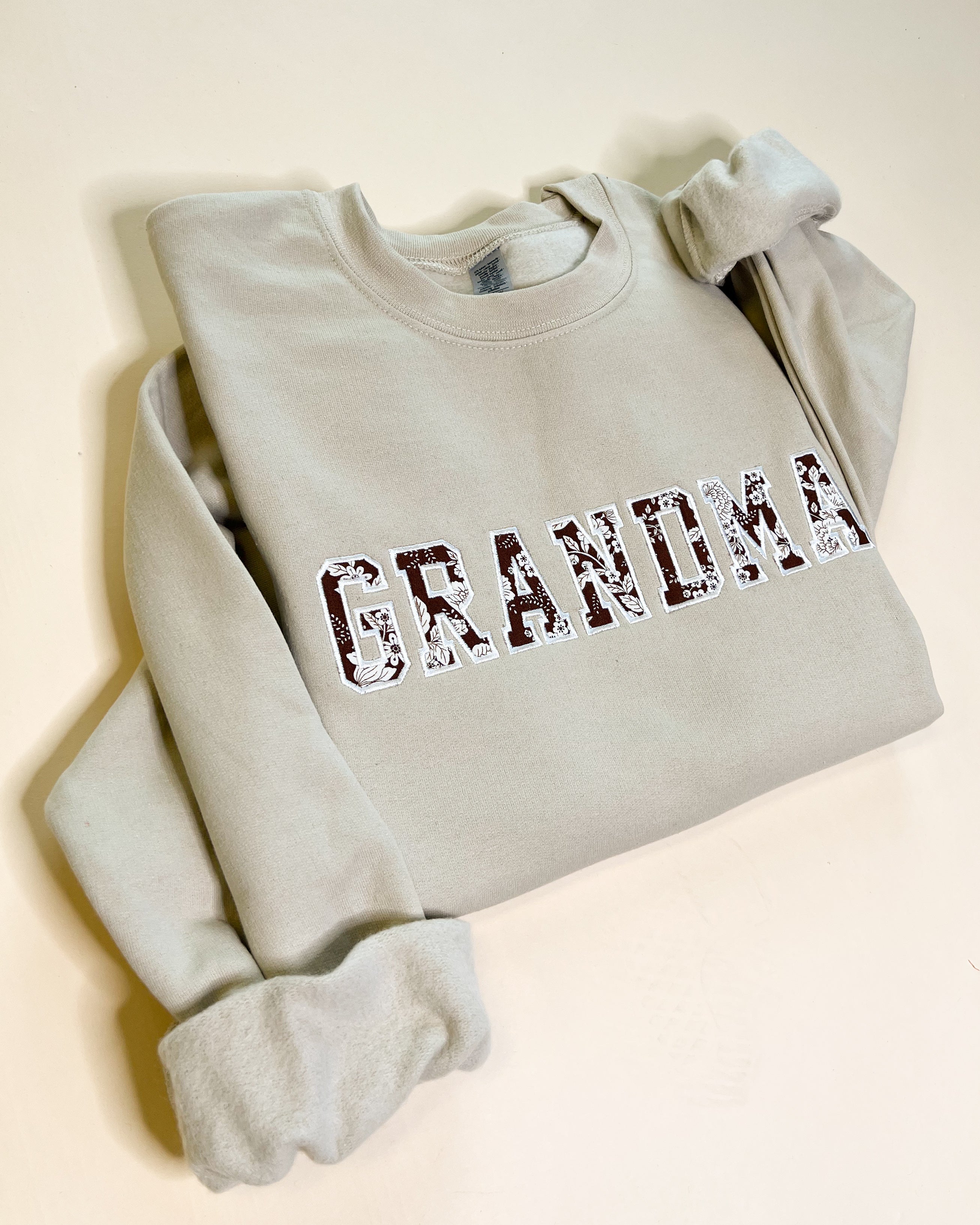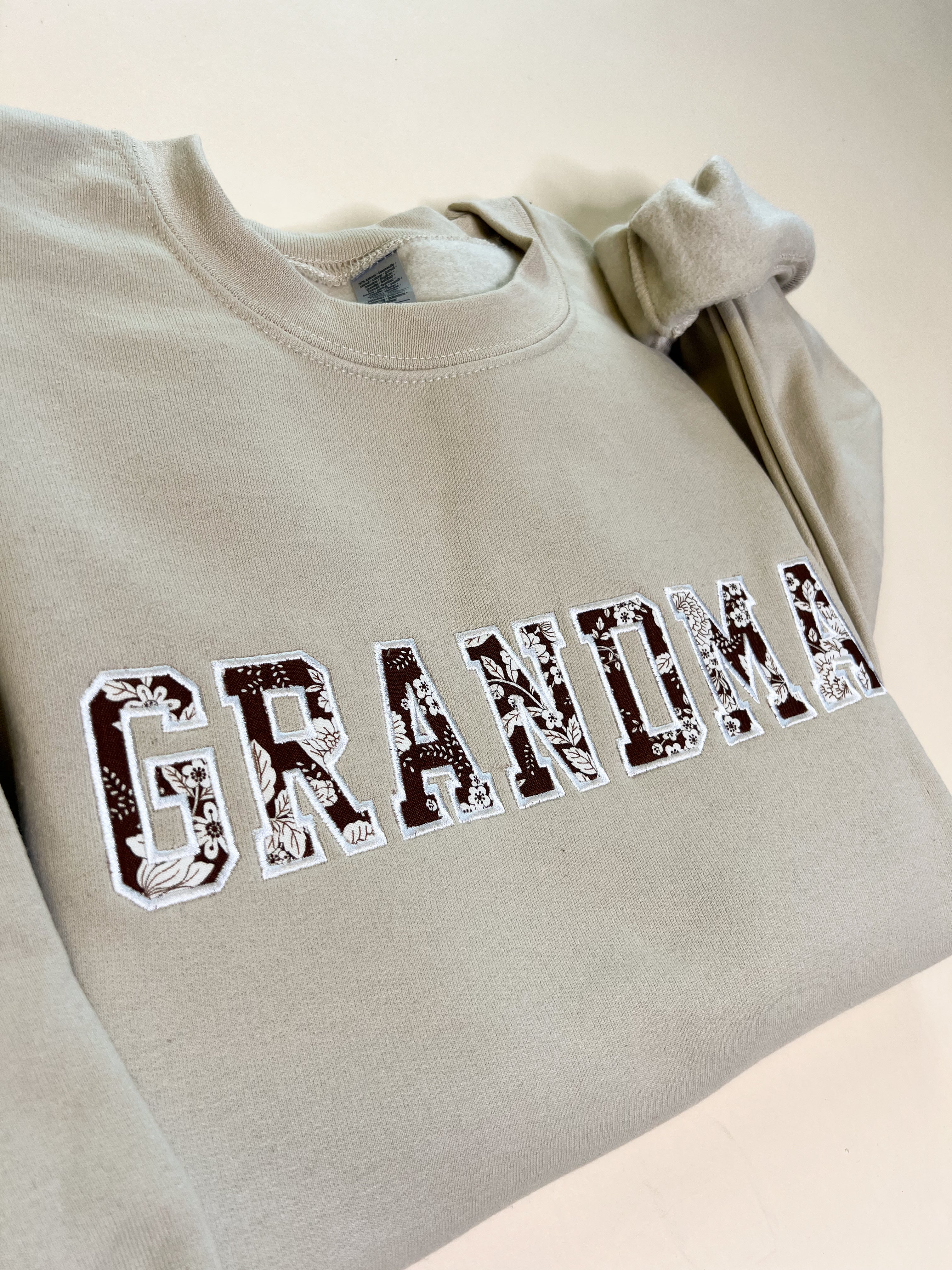 OVERSTOCK - Grandma Floral Applique Patchwork Embroidered Sweatshirt - Tan - Medium