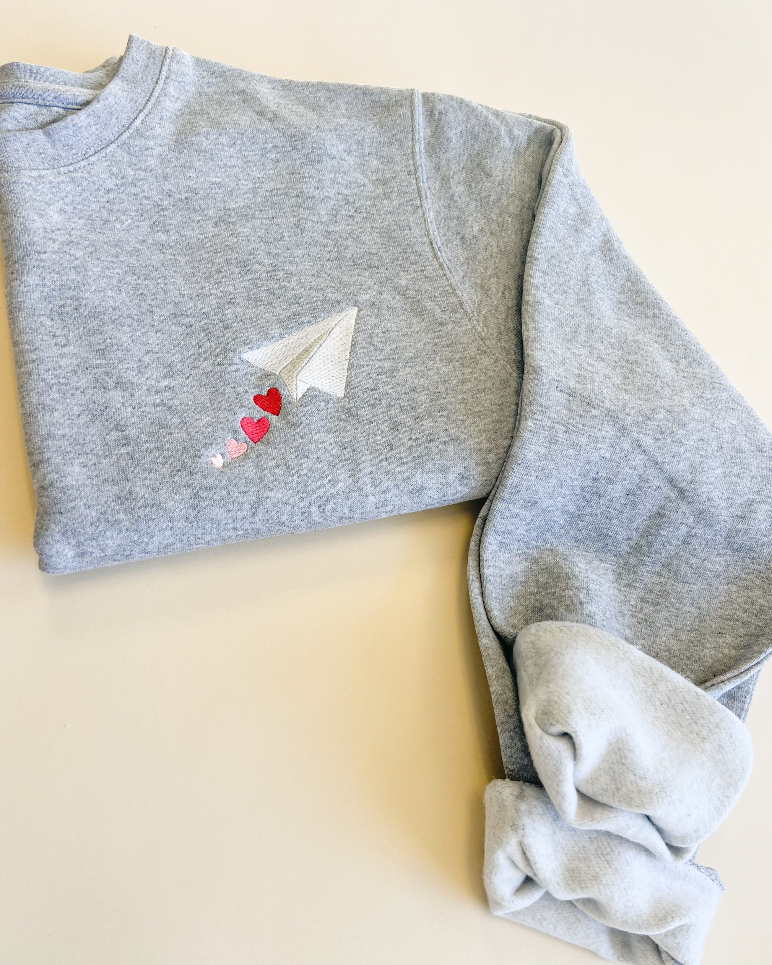 Paper Airplane Embroidered Adult Crewneck - Left Chest Design