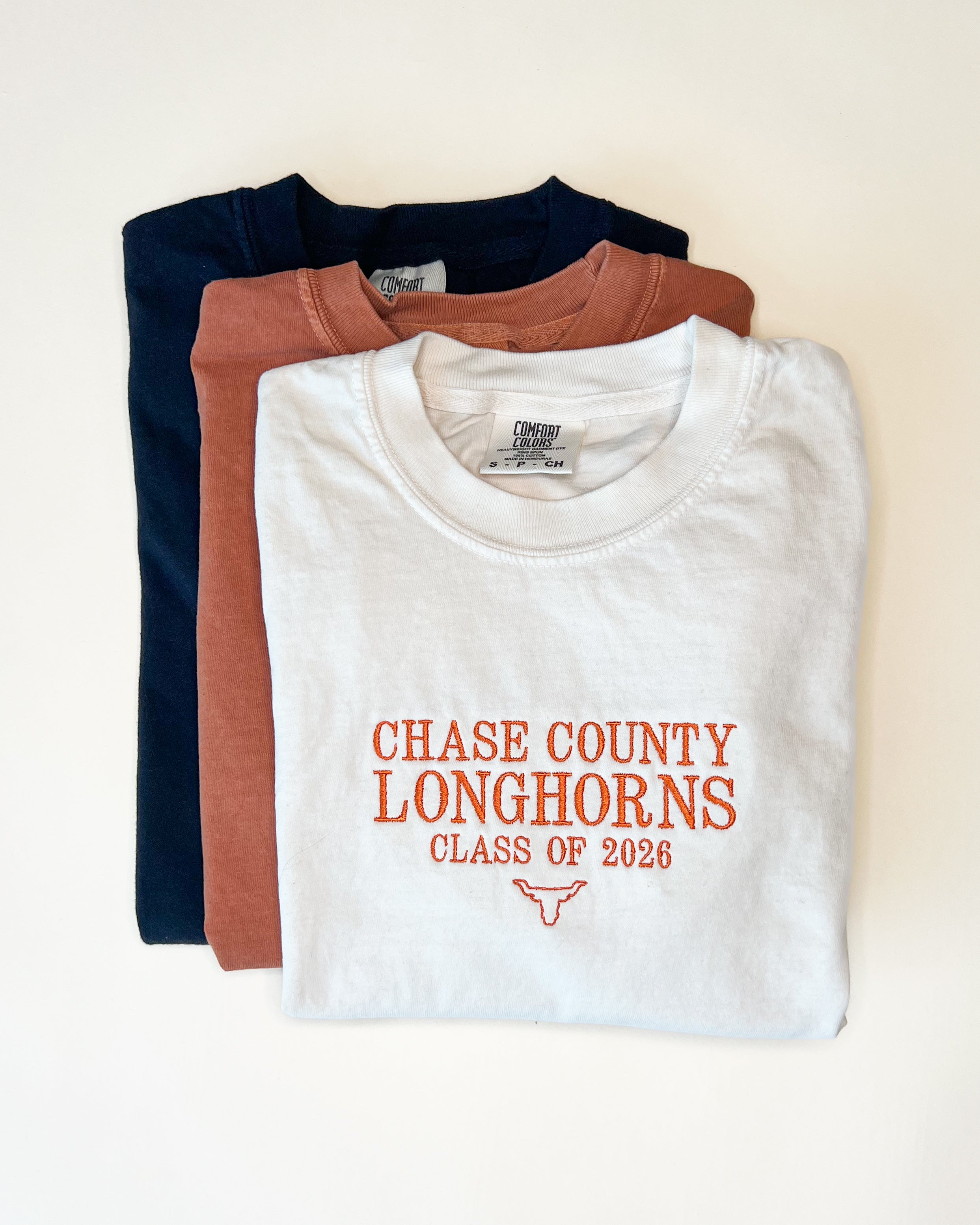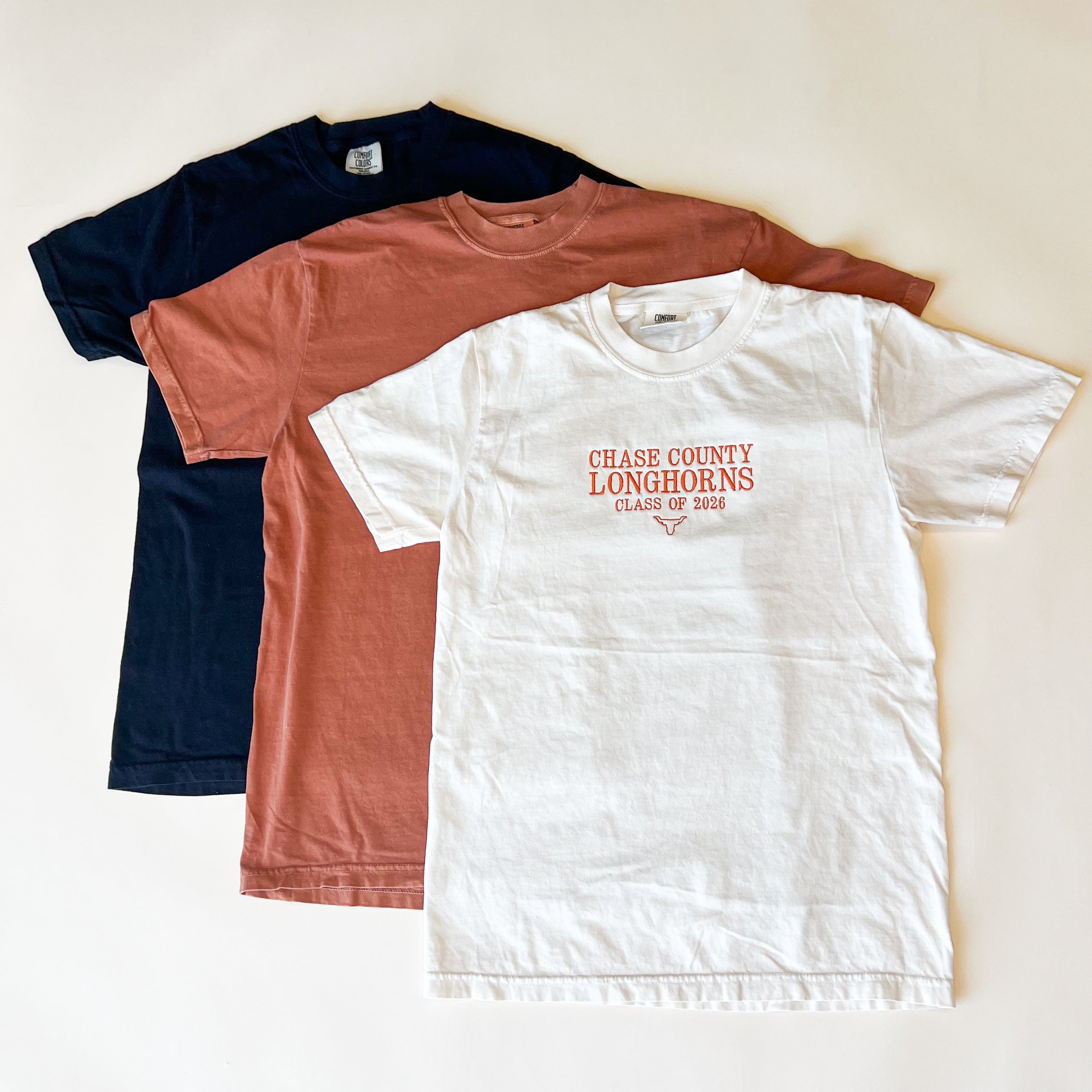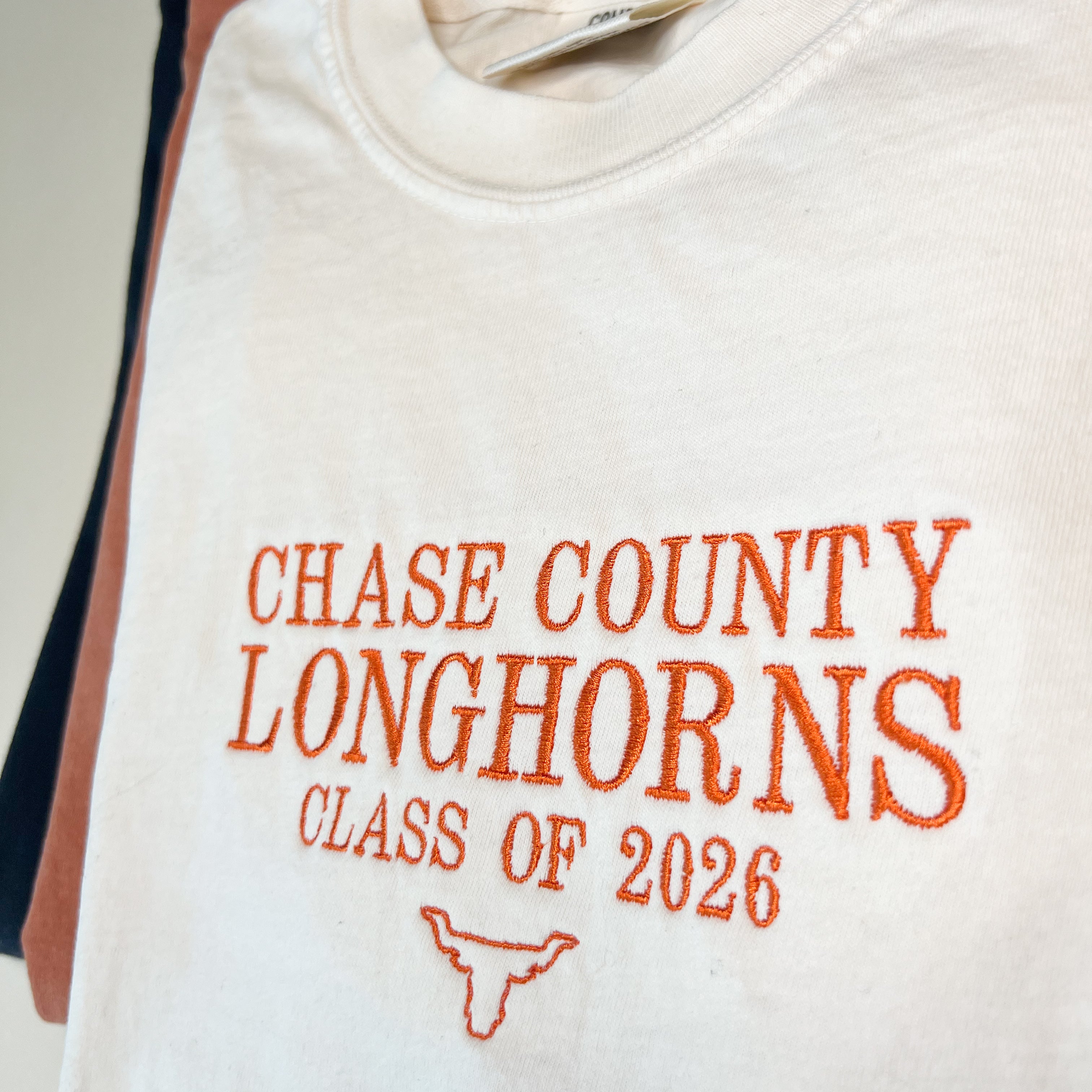 OVERSTOCK - Custom Chase County Class Of 2026 Custom Embroidered Tee - Ivory - Small