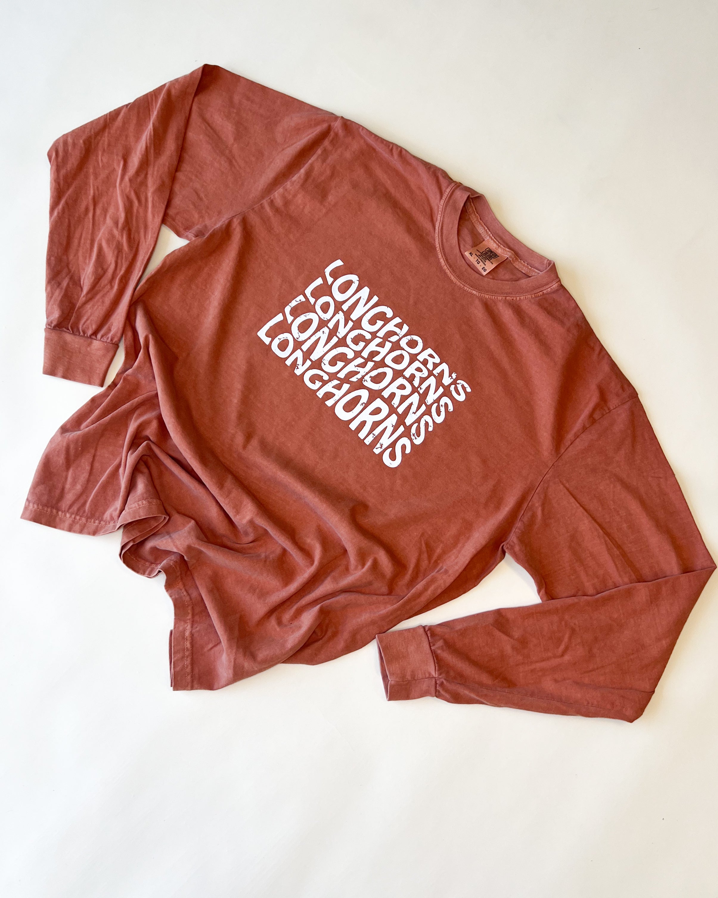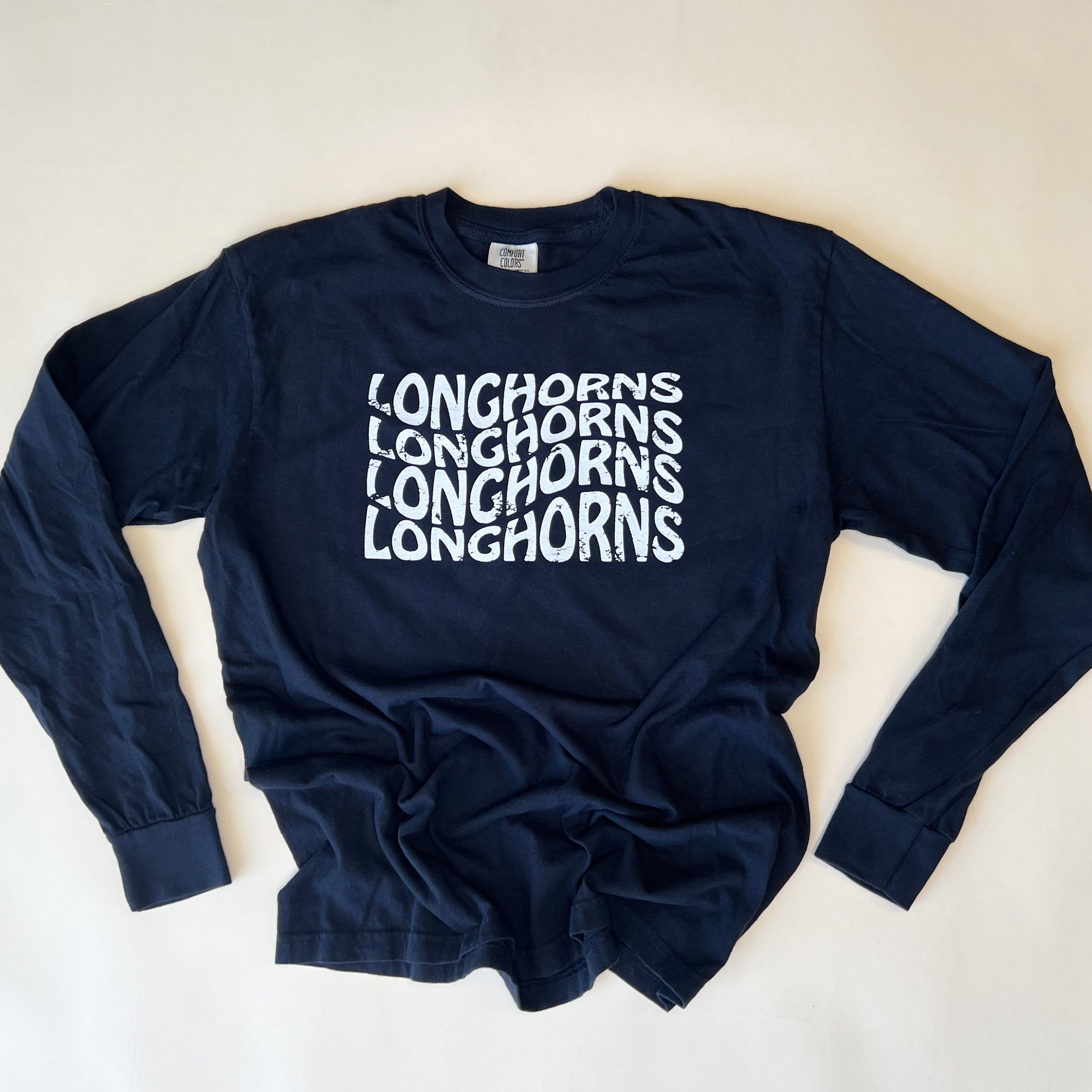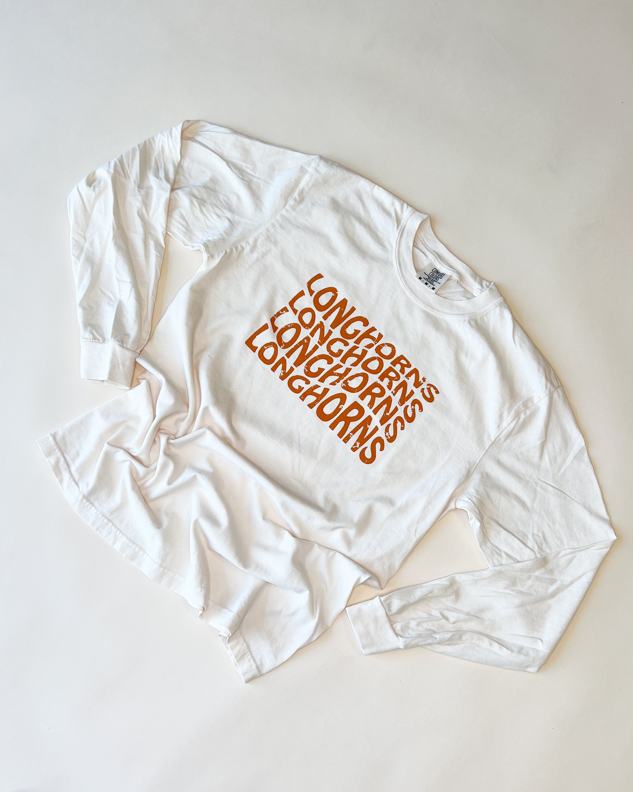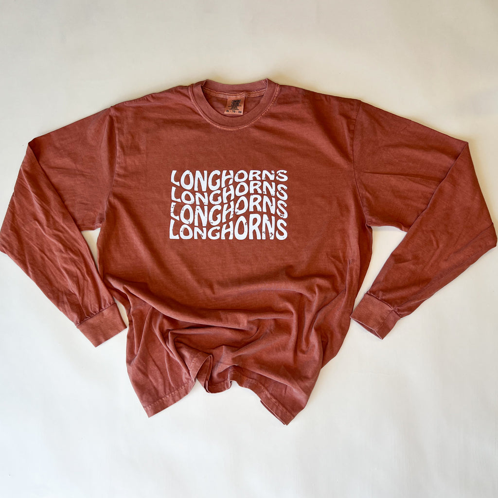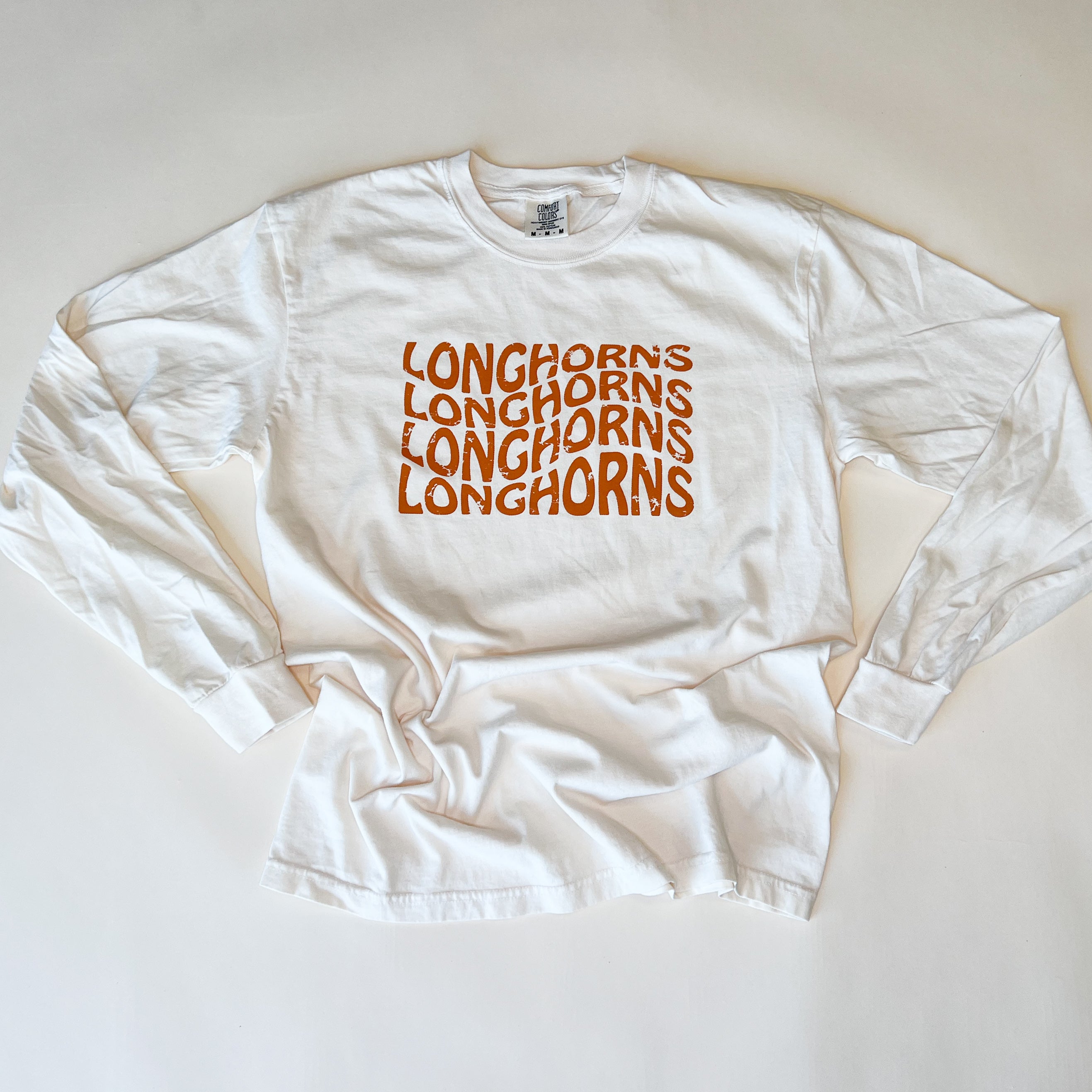 Wavy Longhorns Embroidered Long Sleeve Tee