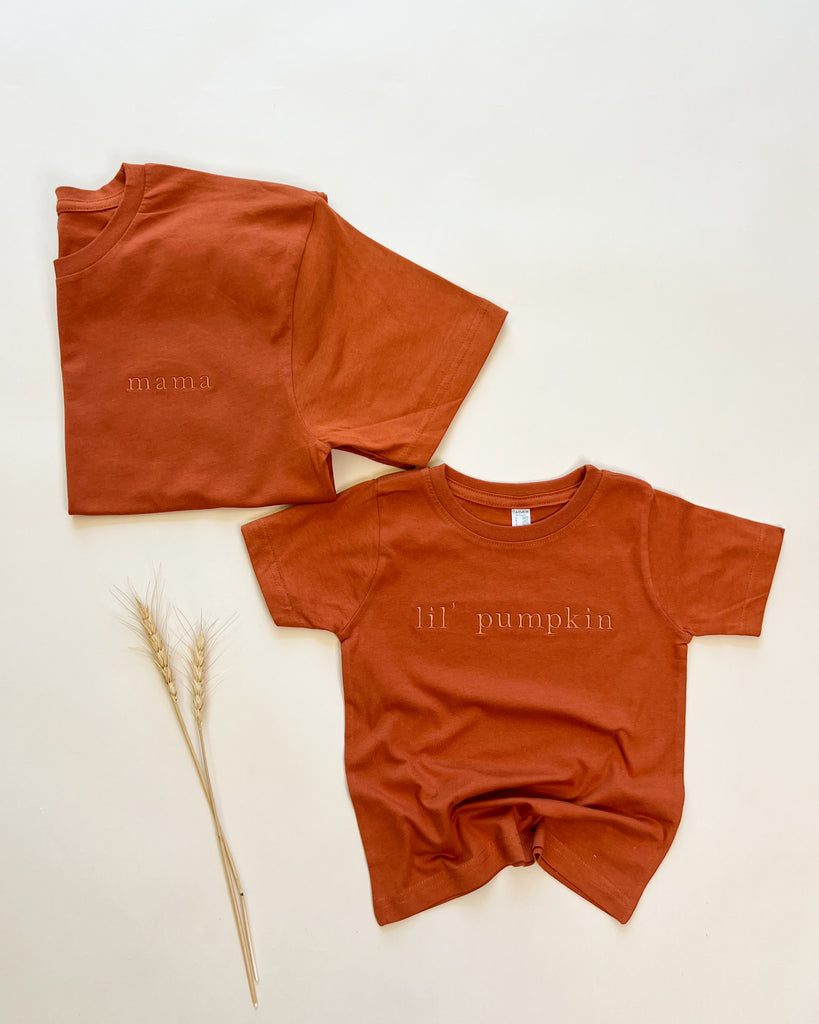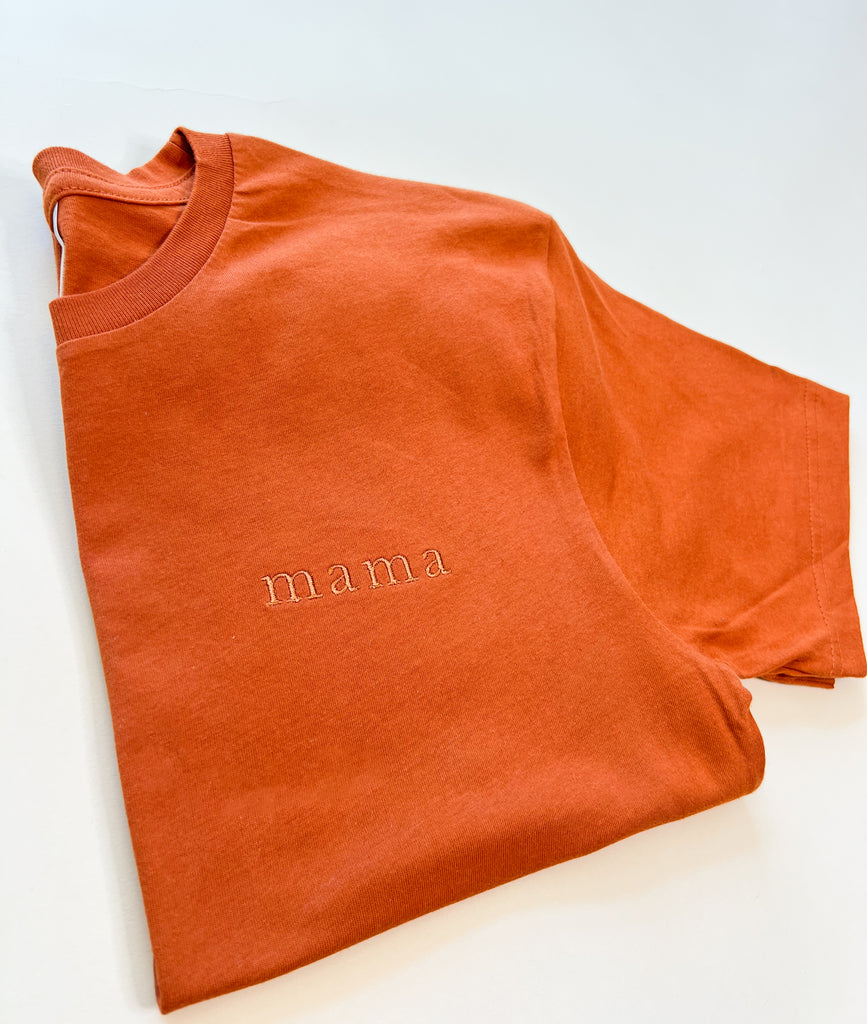 Mama Embroidered Left Chest Classic Tee - Burnt Orange