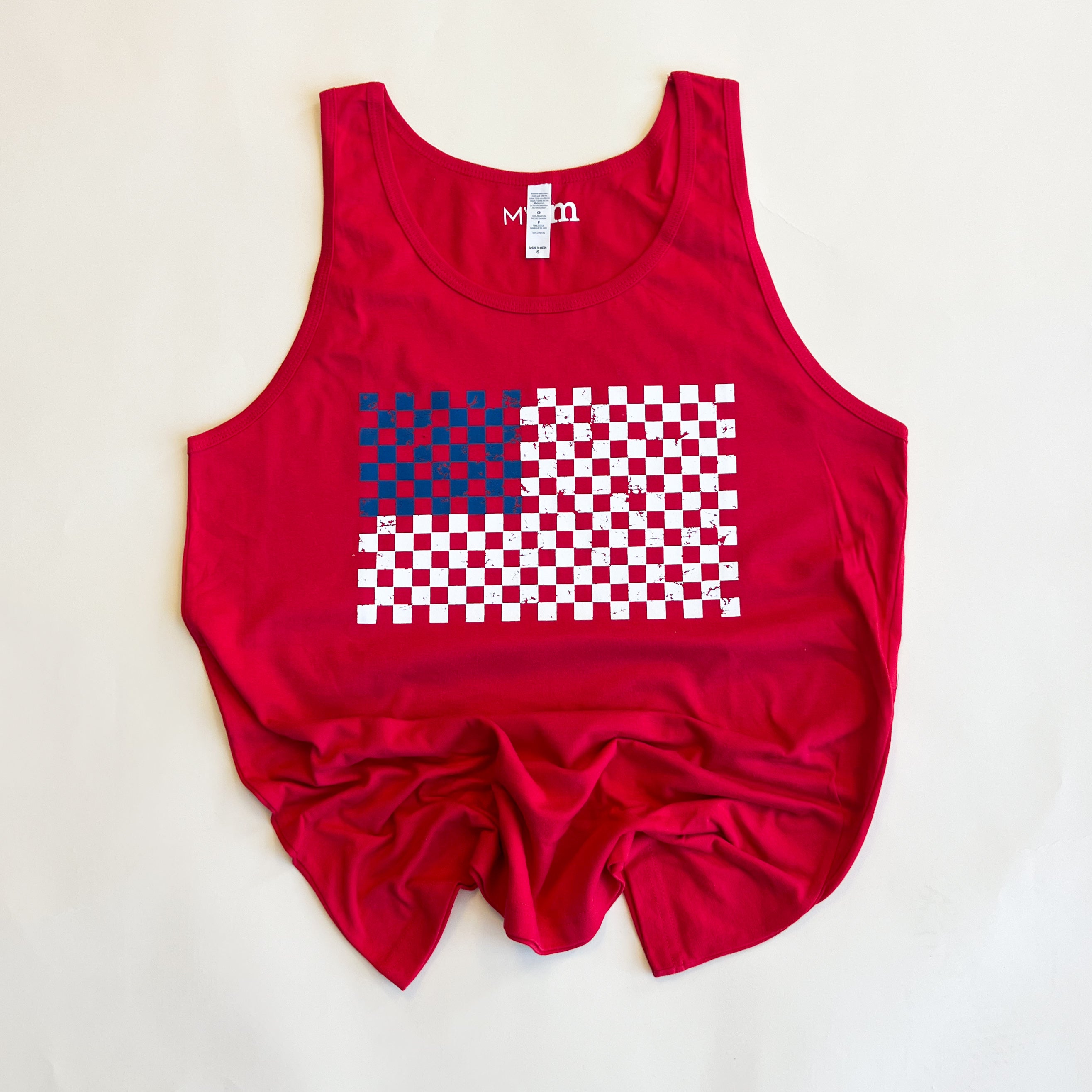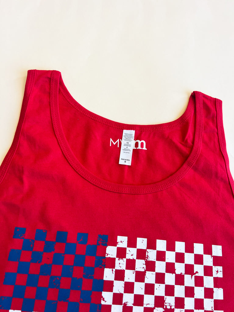 OVERSTOCK - Checkered Flag Tank - White and Blue Design - Size S