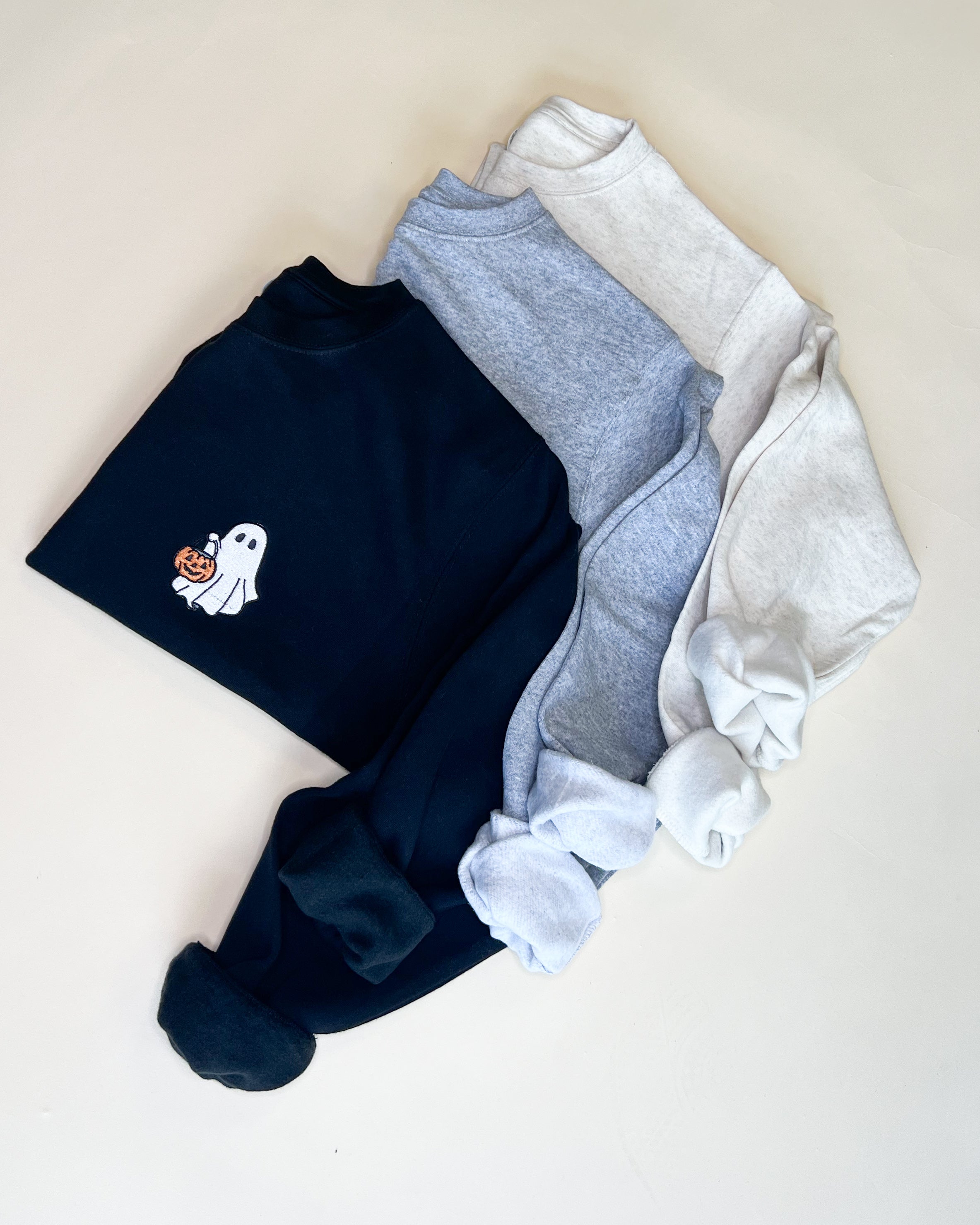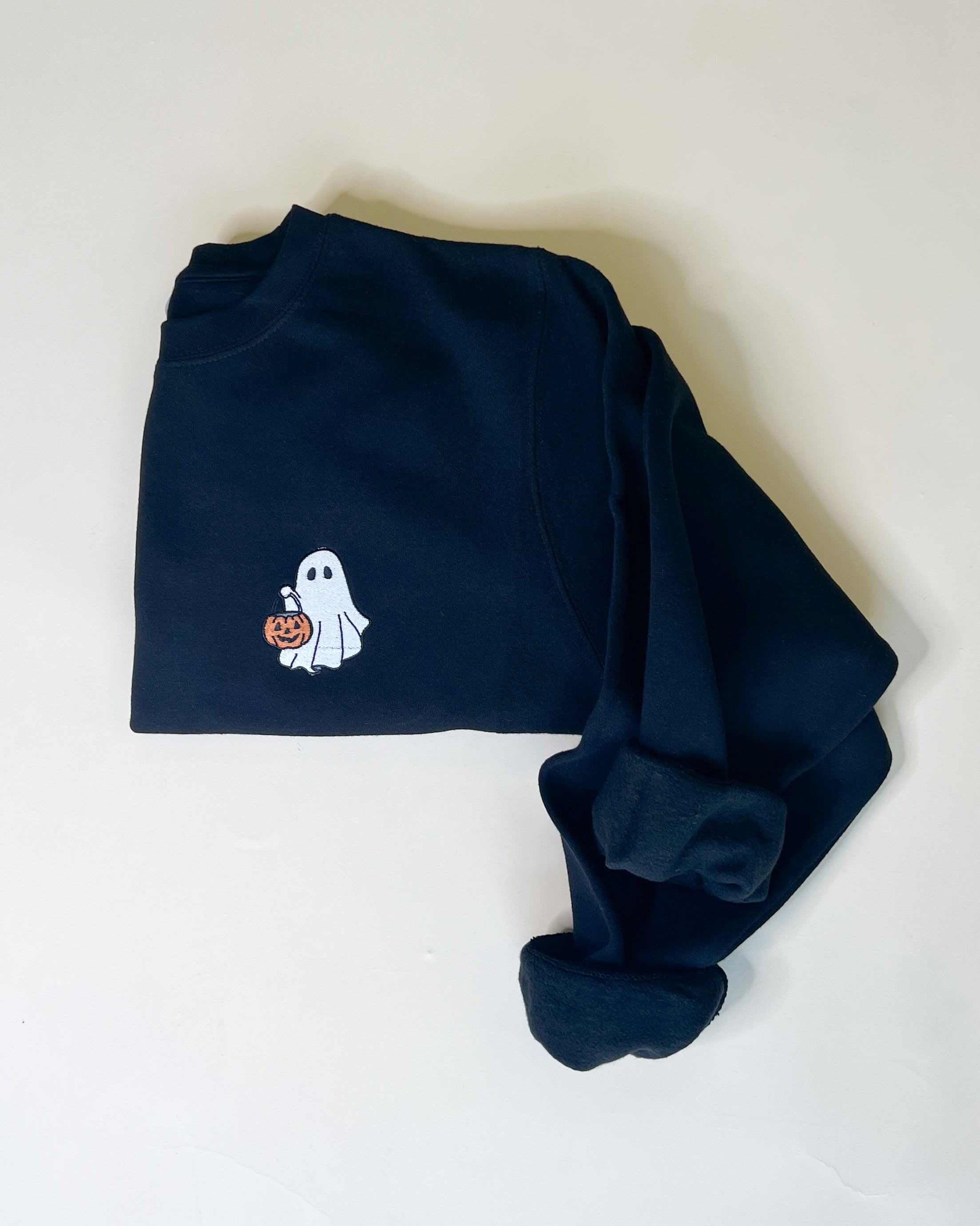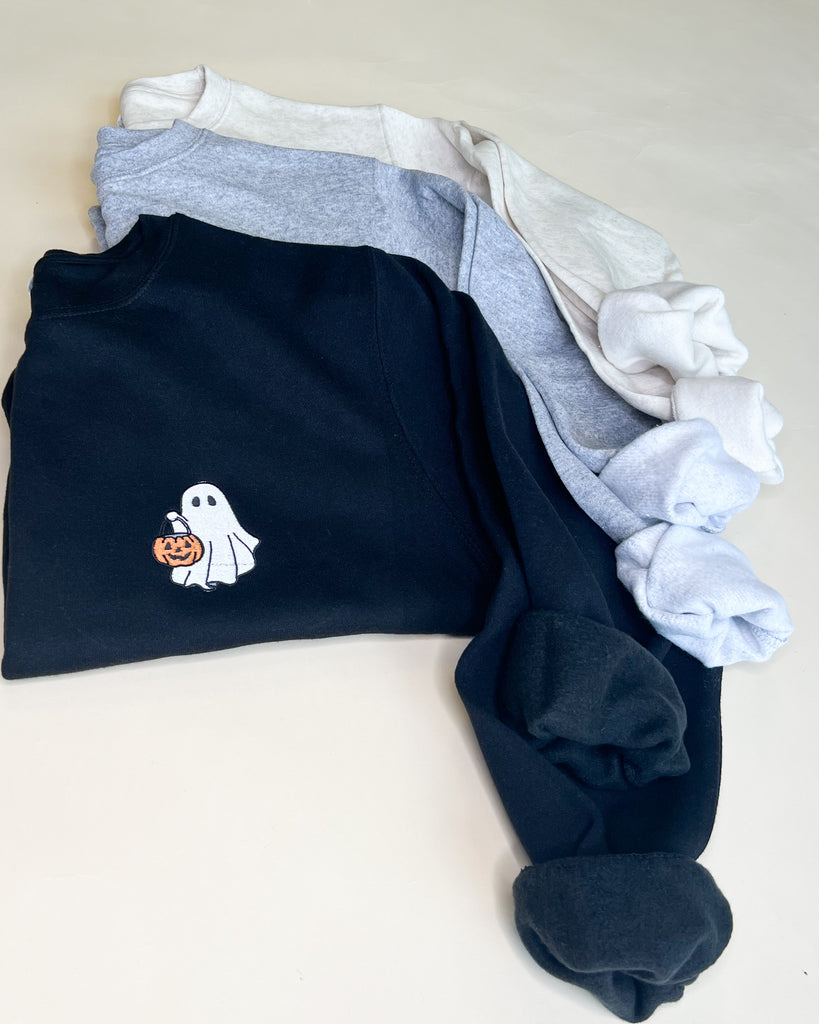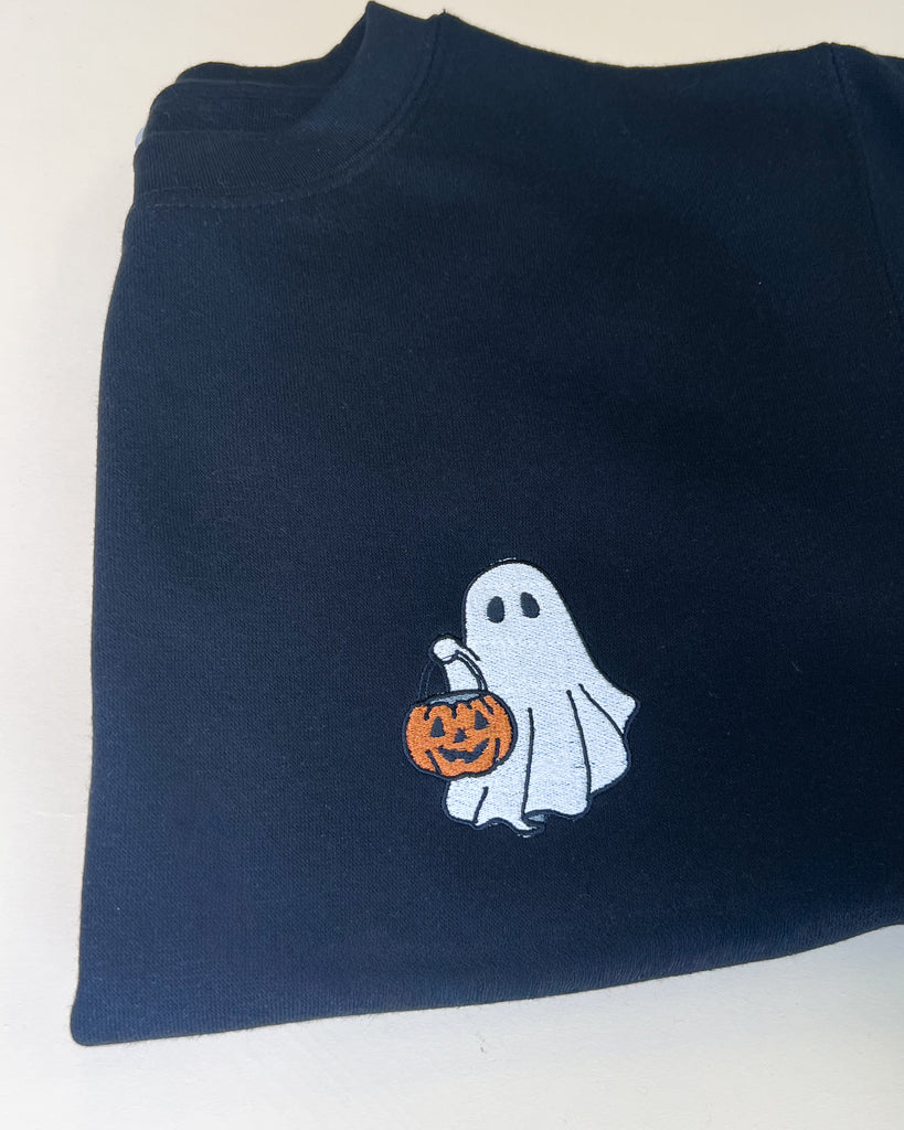 Trick Or Treat Ghost Embroidered Classic Sweatshirt - Left Chest Design