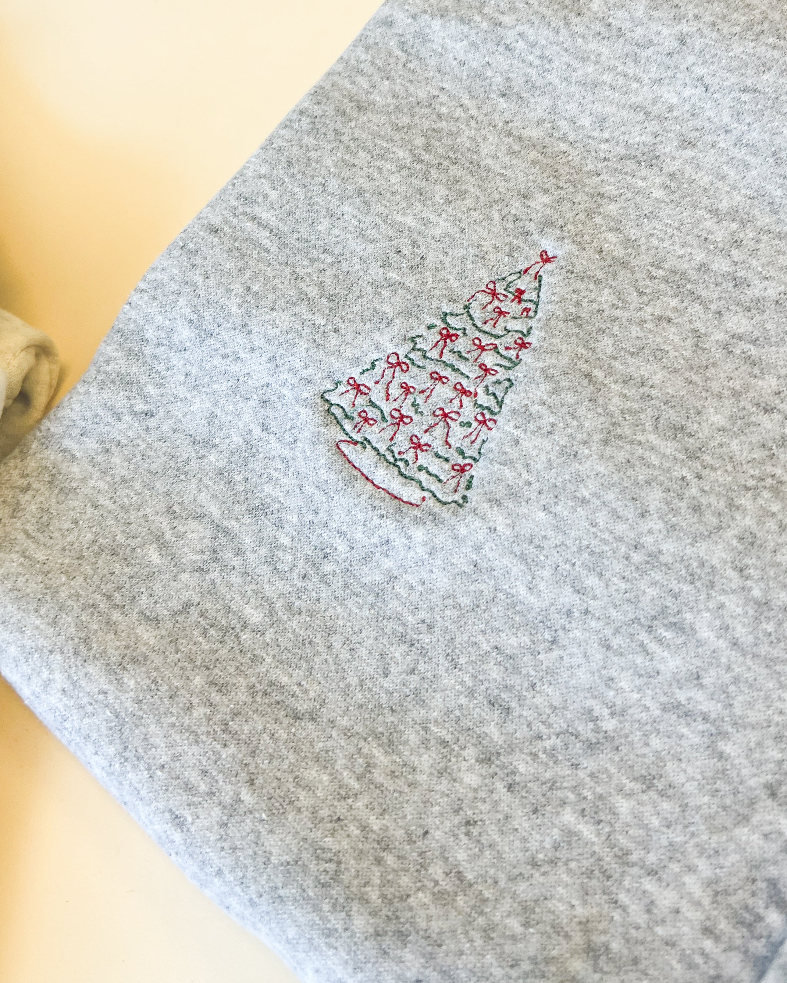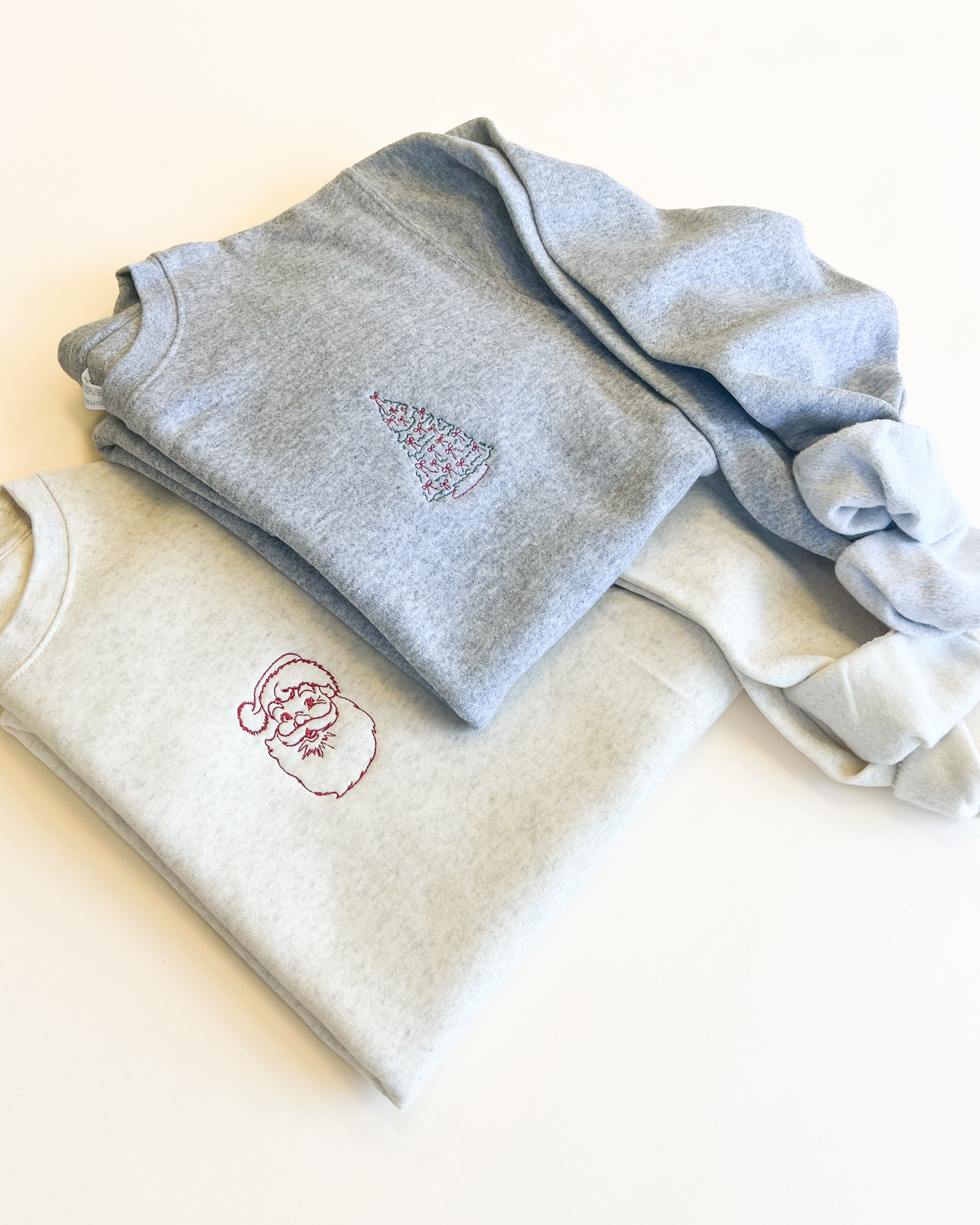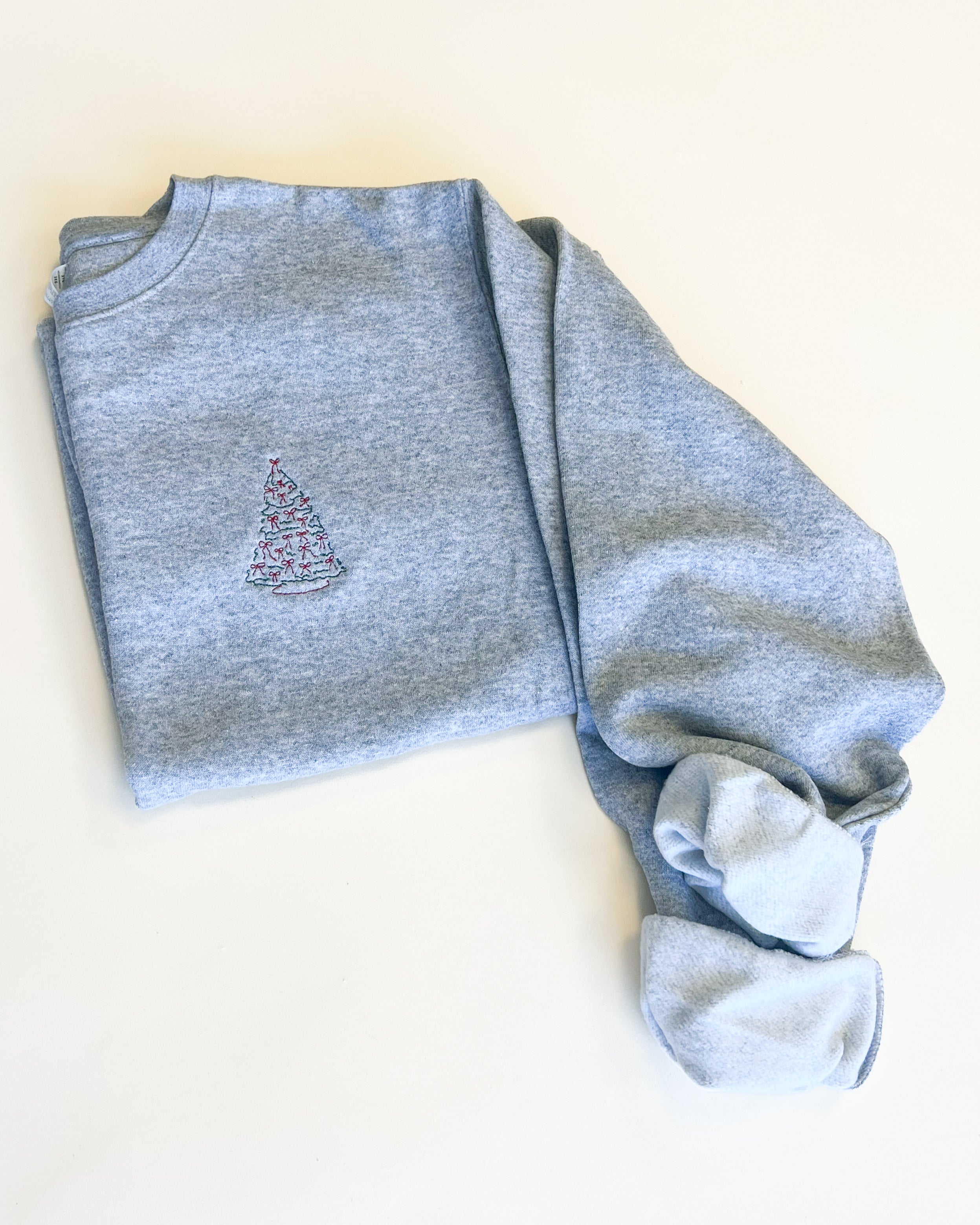 Vintage Christmas Tree Outline Embroidered Sweatshirt - Left Chest Design